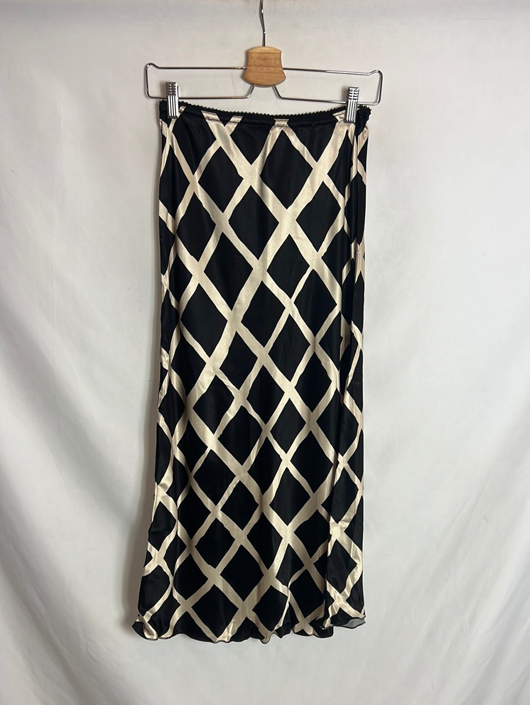 OTRAS. Falda midi estampado geométrico satinado. T S