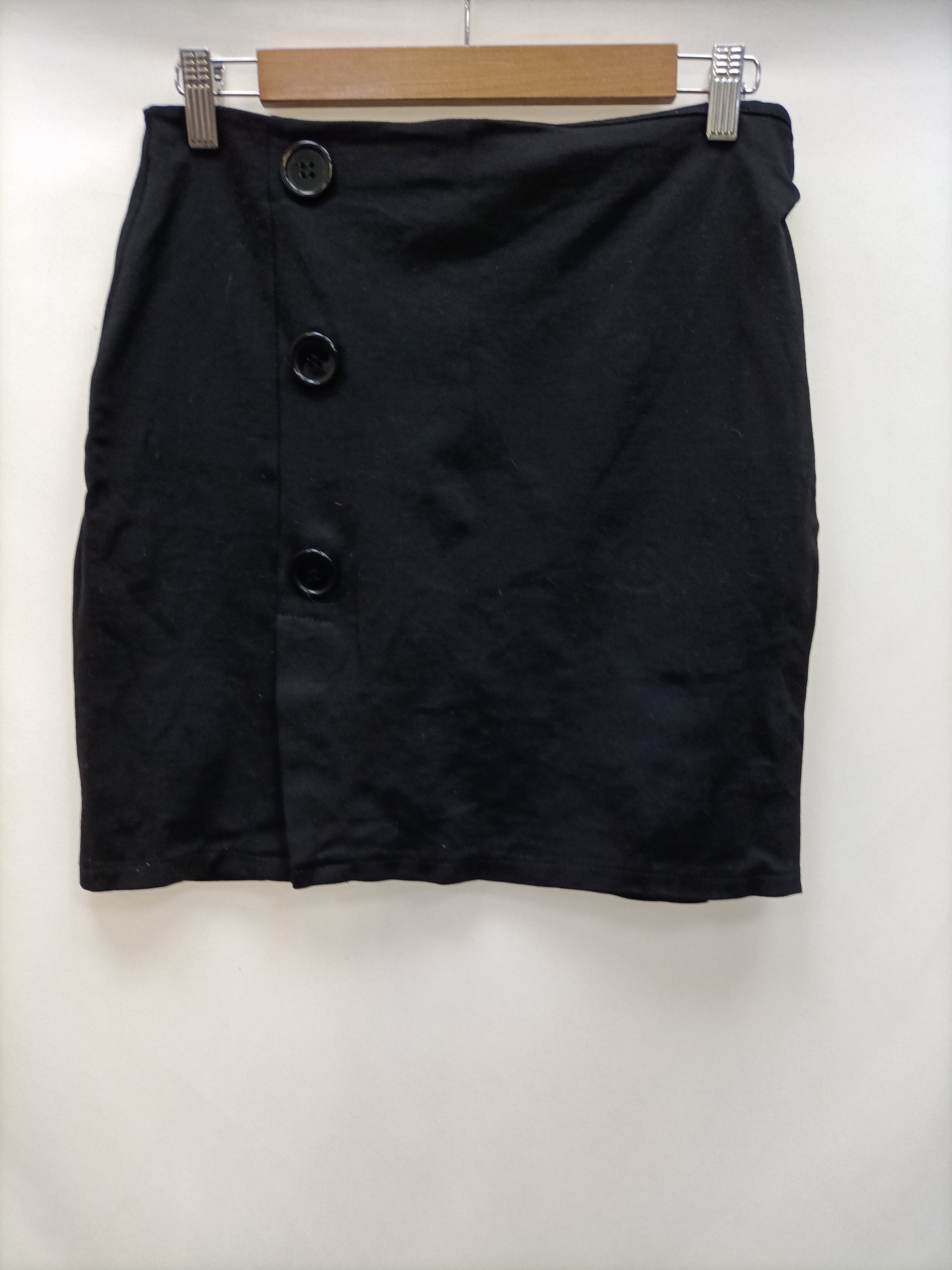 falda corta básica negra con botones. elástica. cintura 37 cm cm largo 43 cm