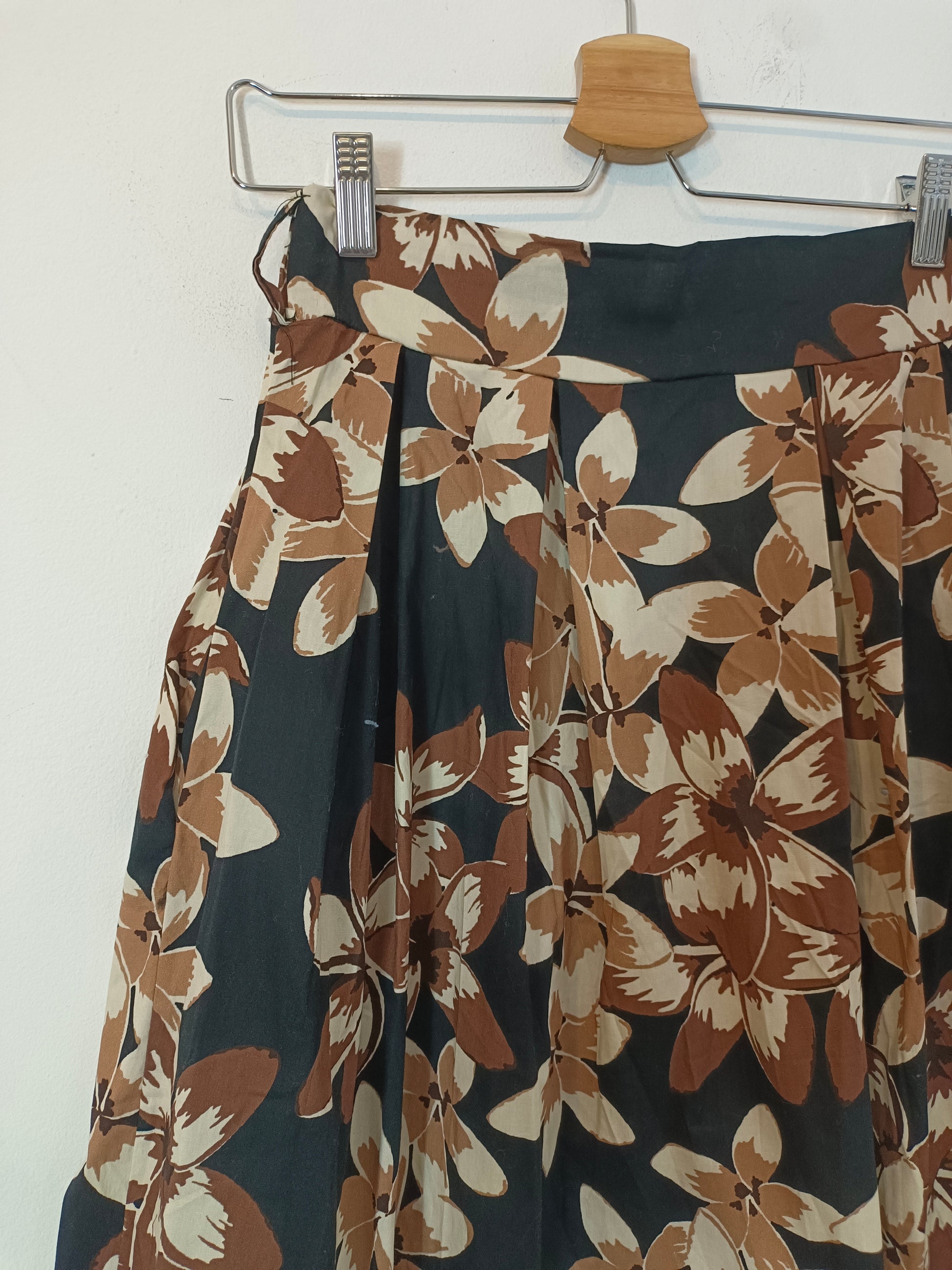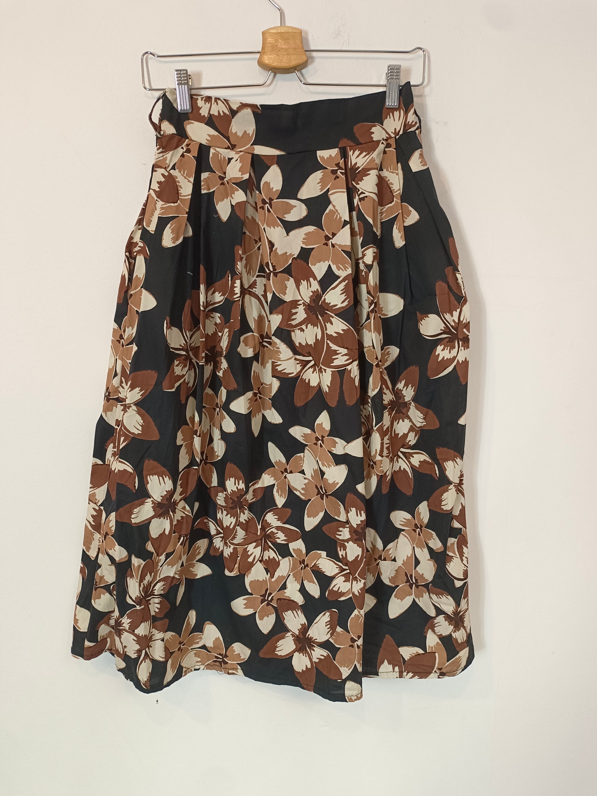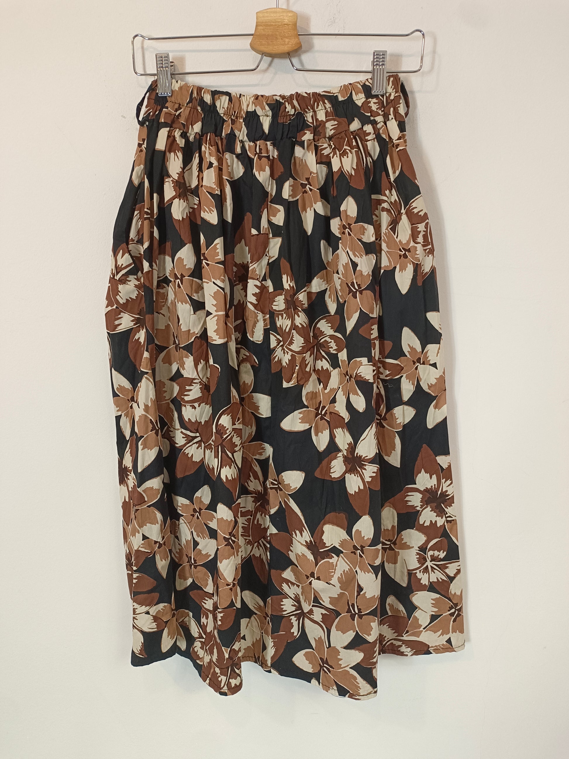 falda negra con estampado de flores beige y blanco. Cintura elástica. Largo cm