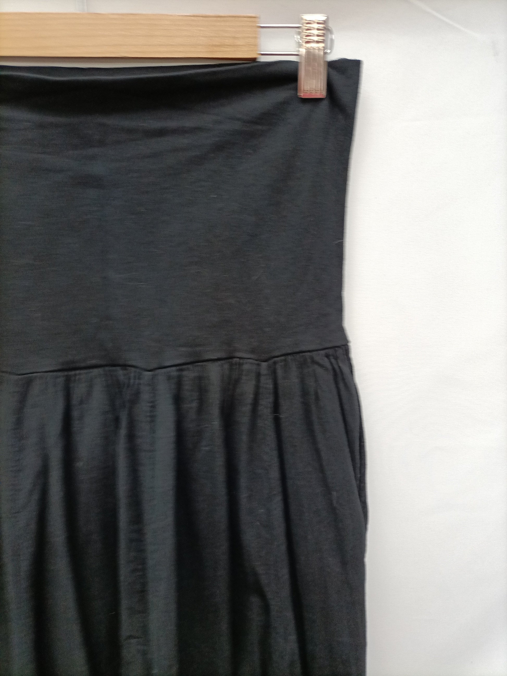 Falda negra larga con vuelo y cintura ancha elástica. largo 105 cm