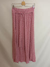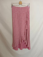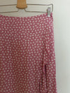 falda midi rosa con estampado de tulipanes. cintura elástica con lazada.