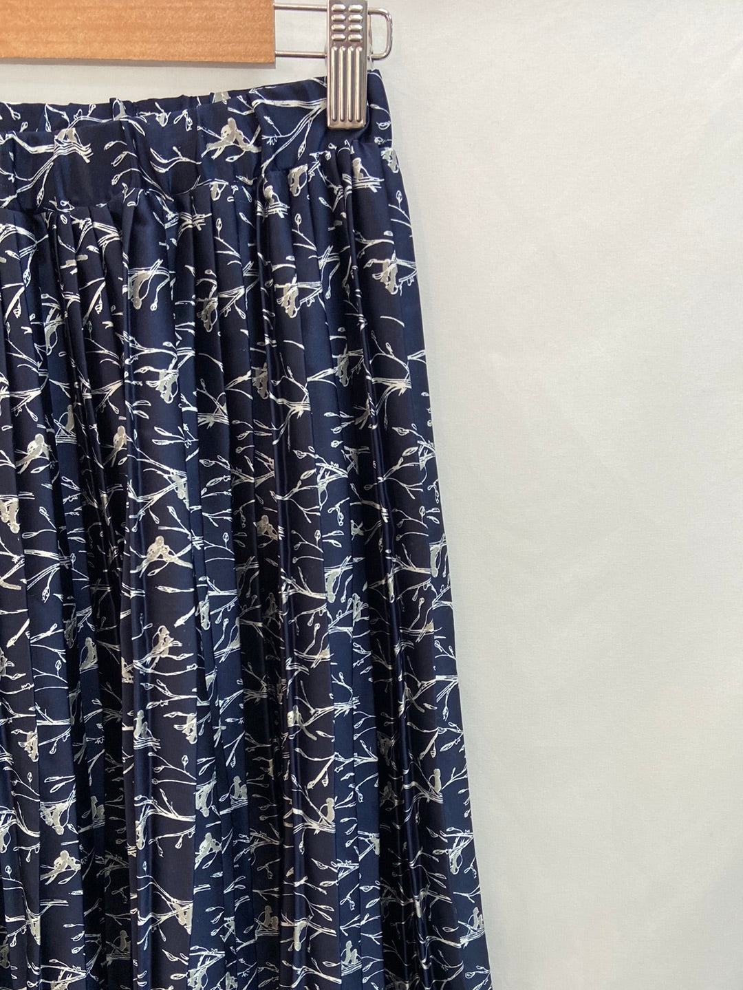Falda corta con tablas y estampado de pájaros. Tiene la cintura elastica y es fluida.