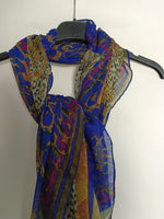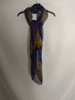 Fular fluido azul estampado vintage