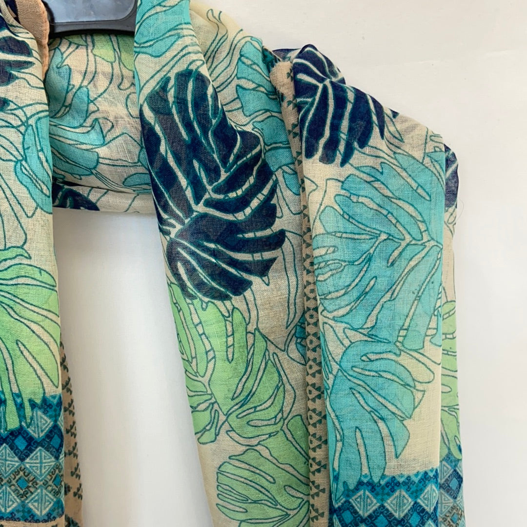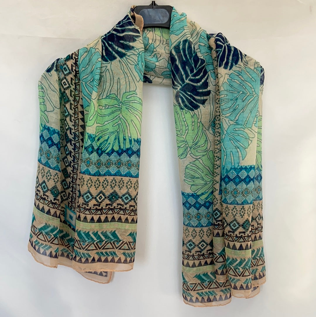 OTRAS.Fular multiestampado tonos azules,beiges y verdes