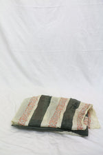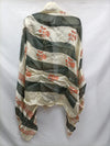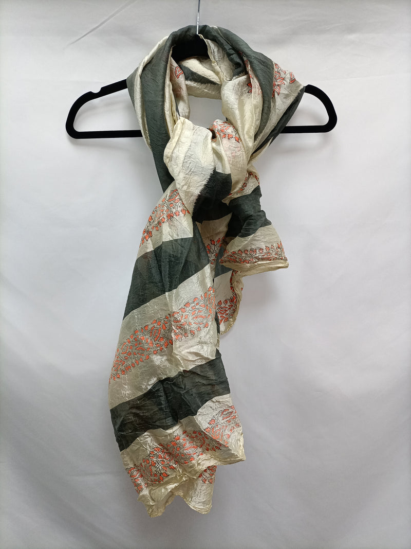 Fular de rayas beiges y verdes con adornos de flores naranjas