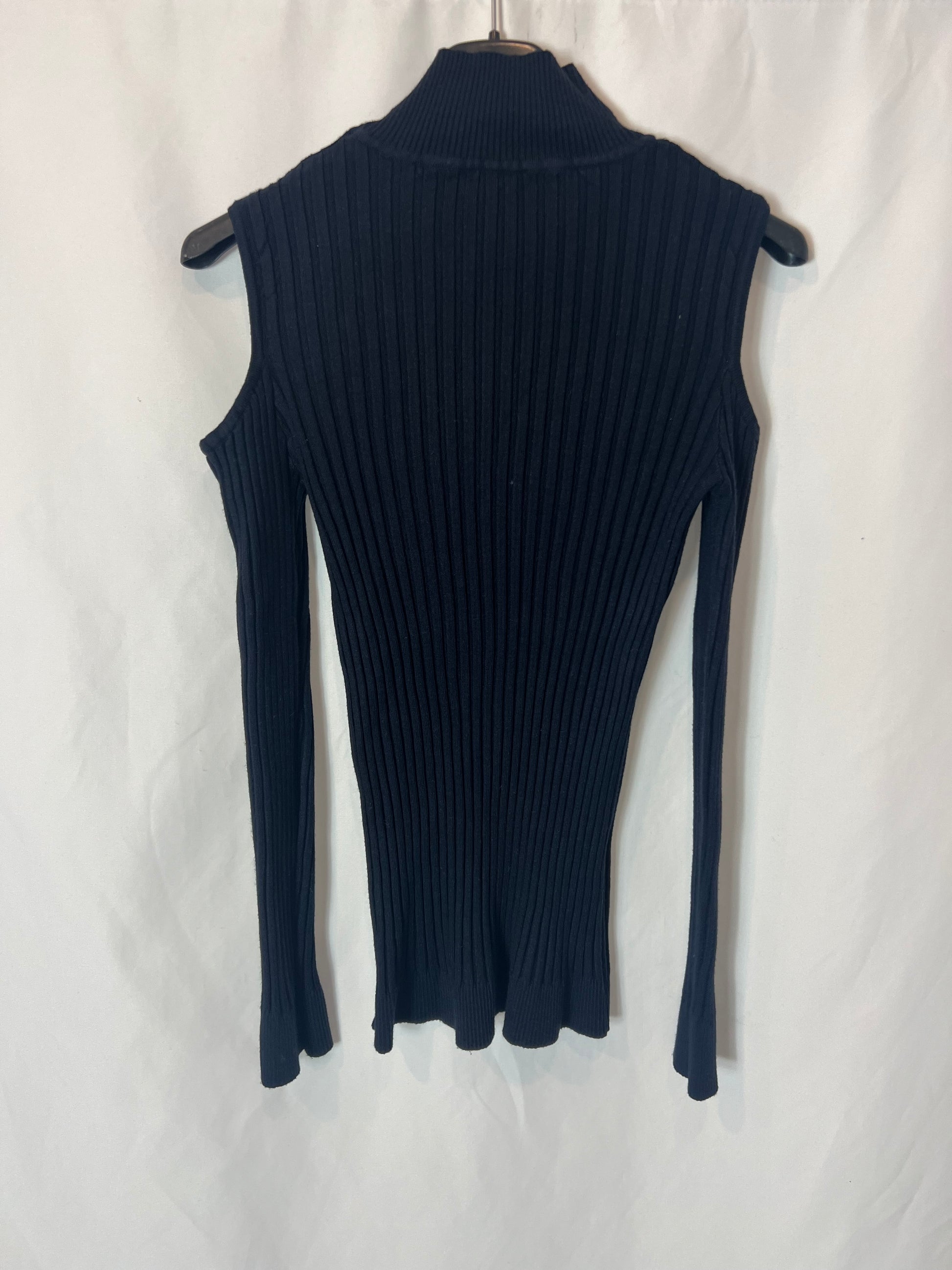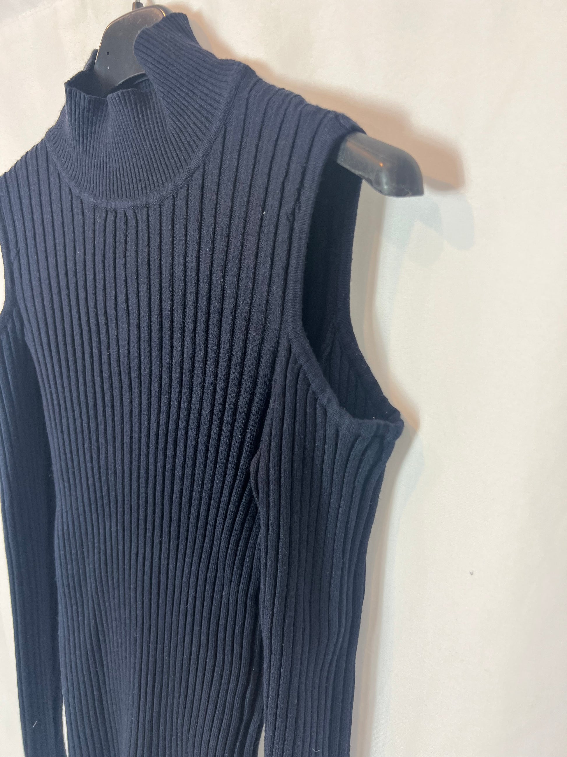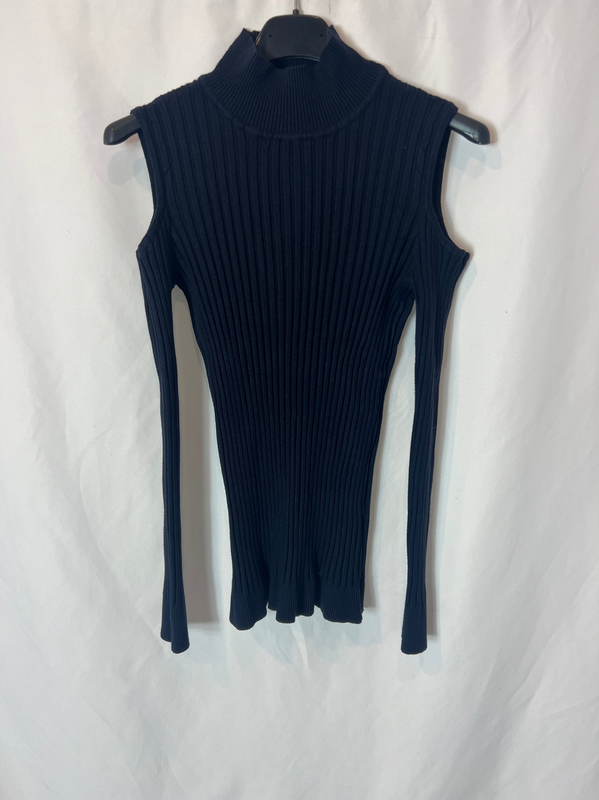 OTRAS. Jersey azul canalé hombros al aire. T L