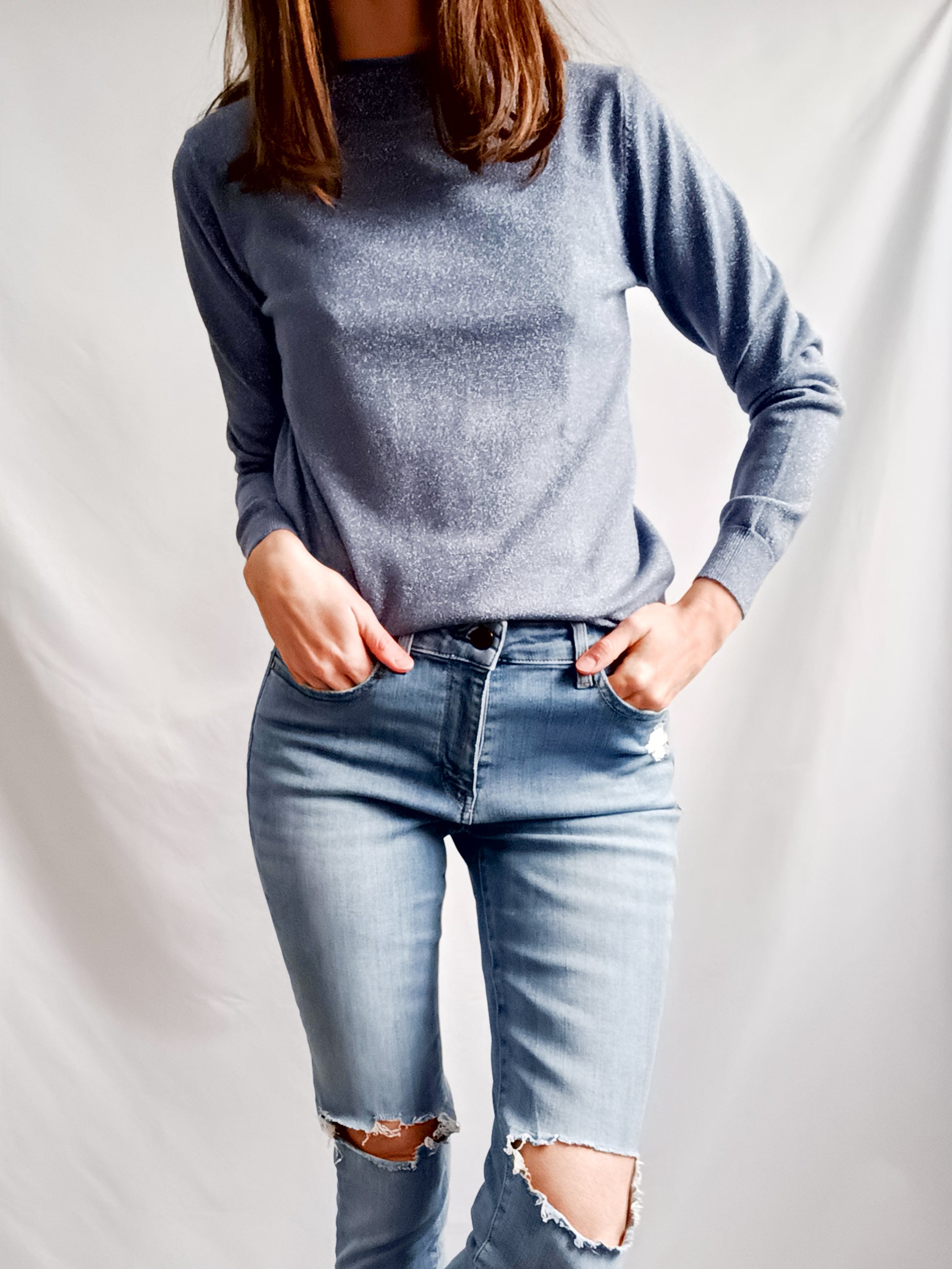 Jersey azul Finito con detalle de hilos plateados. Elastico. Largo 60 cm