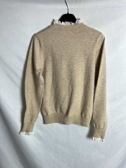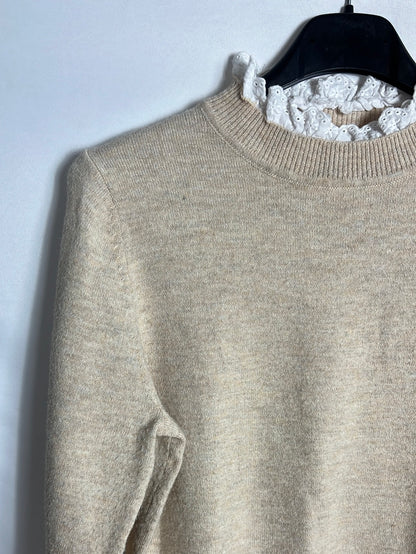 OTRAS. Jersey beige detalle puños y cuello. T S