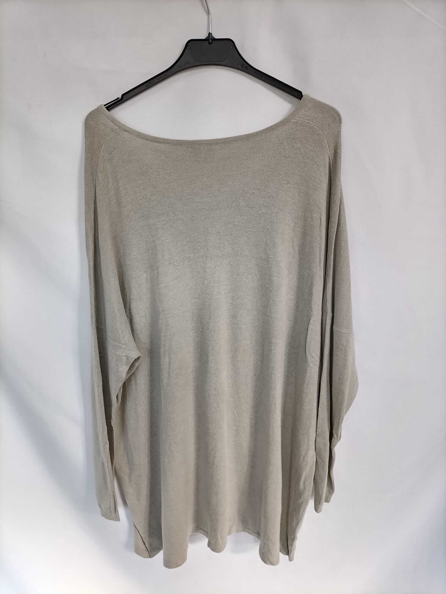 Otras. Tu (l/Xl). Jersey beige grisacro estilo oversized. Finito y fluido. Largo 79 cm
