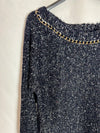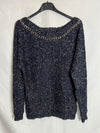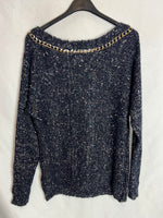 jersey jaspeado azul y blanco con detalle de cadena en el cuello