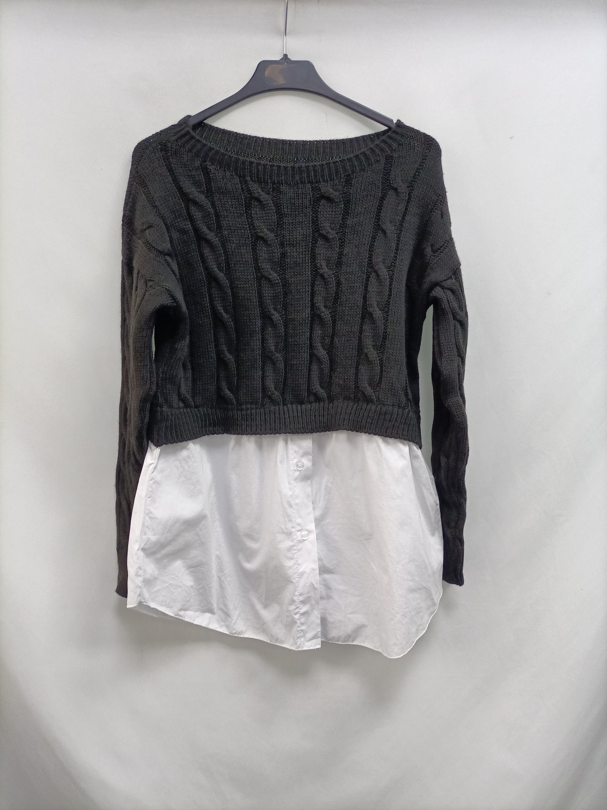 Jersey negro con la parte de abajo de camisa blanca. largo 69 cm