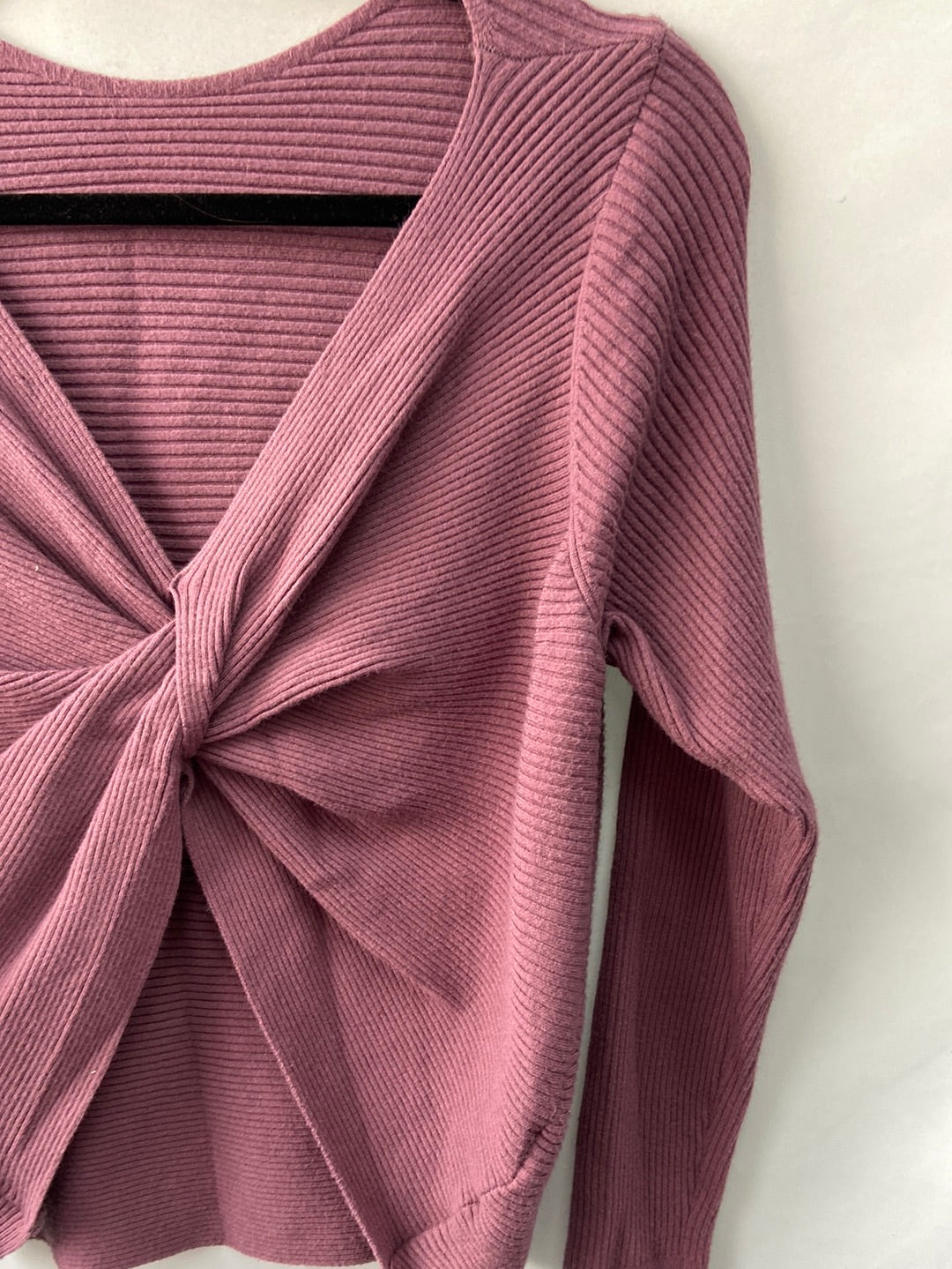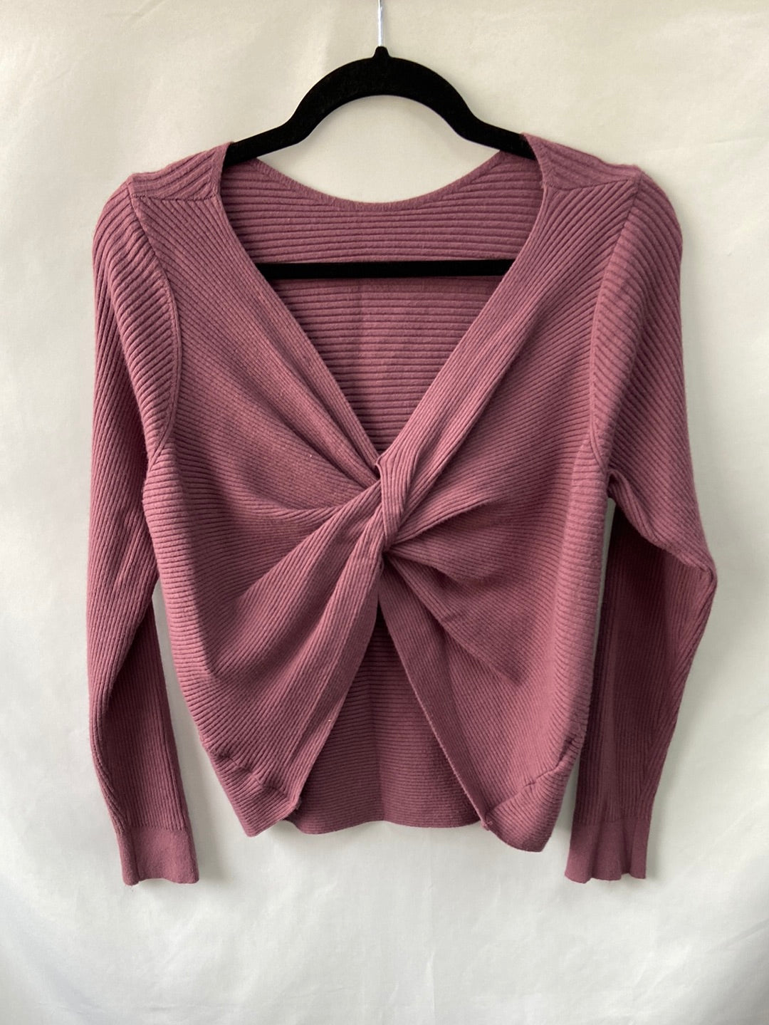 Jersey de punto morado con la espalda abierta cruzada. elástico