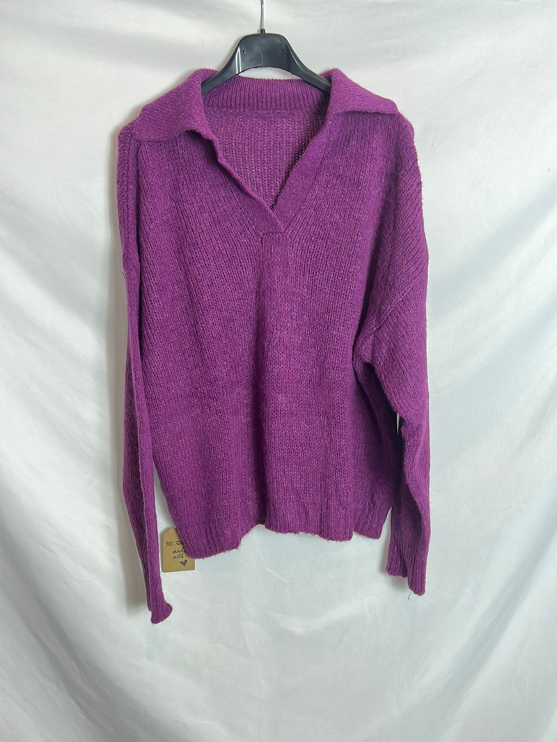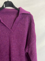 NUEVO CON ETIQUETA . Jersey punto morado cuello efecto polo