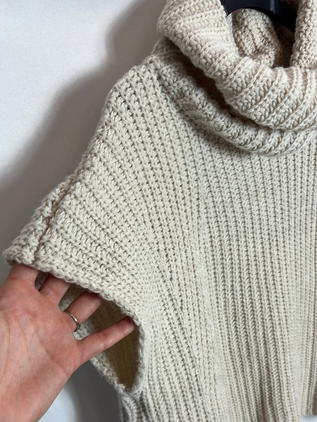 Jersey sin mangas beige cuello alto. Largo 54cm