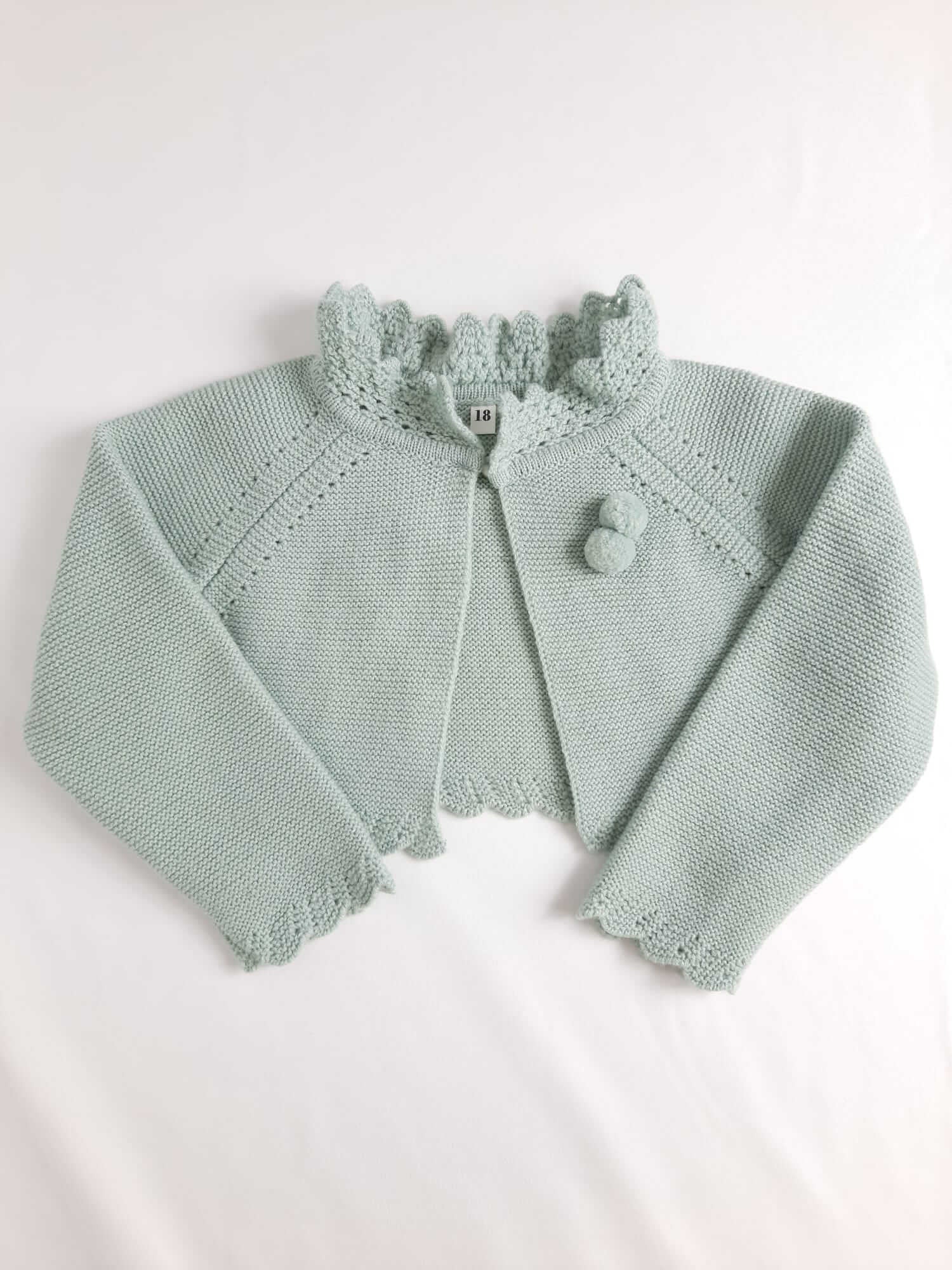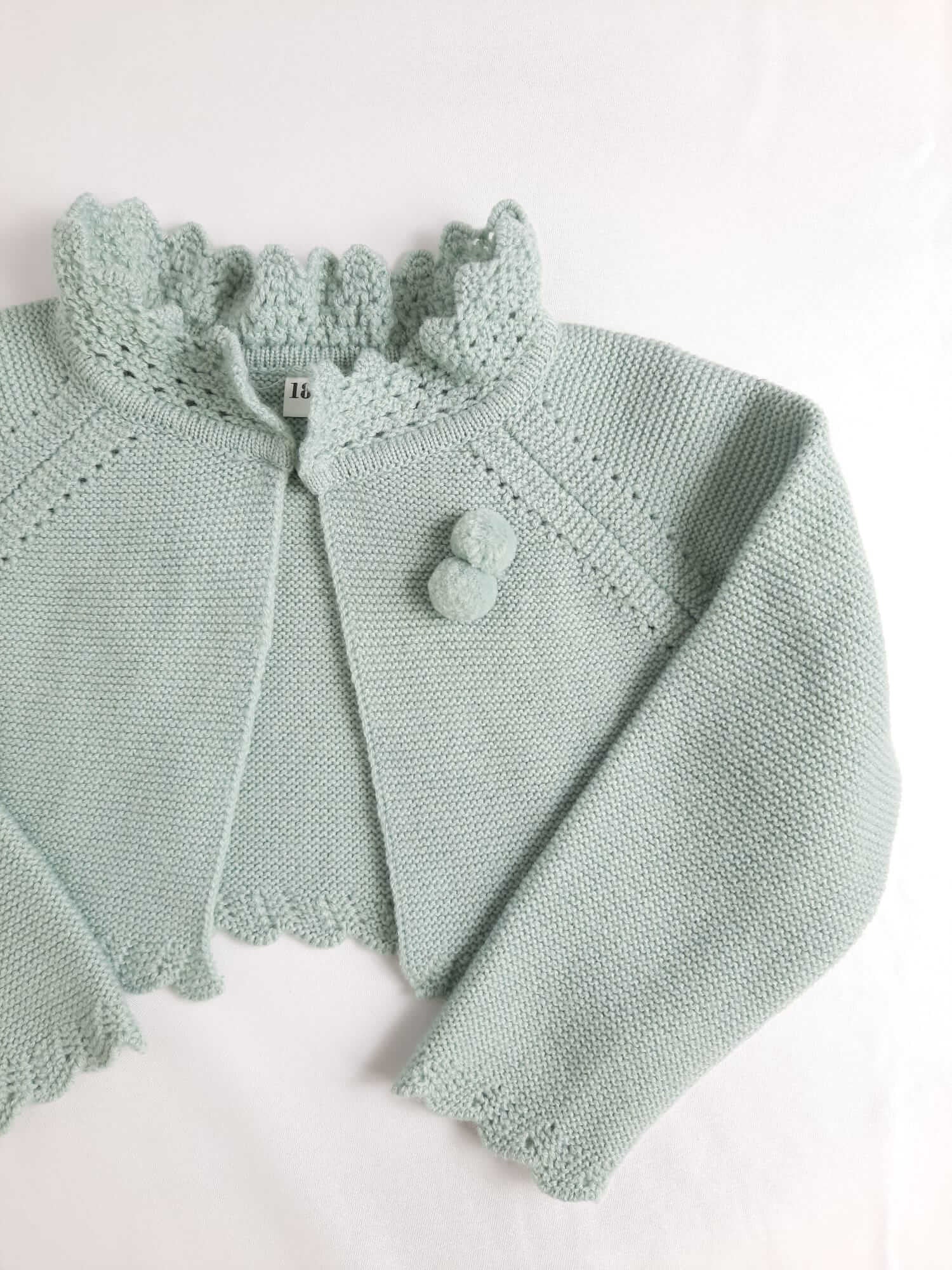 Rebeca verde agua con botoncito arriba. Elástica. Largo 20 cm