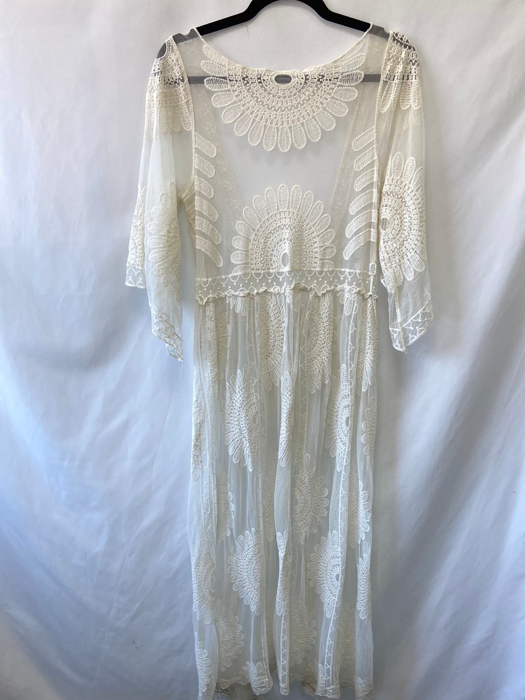 kimono blanco rojo encaje bordado. Largo 133 cm