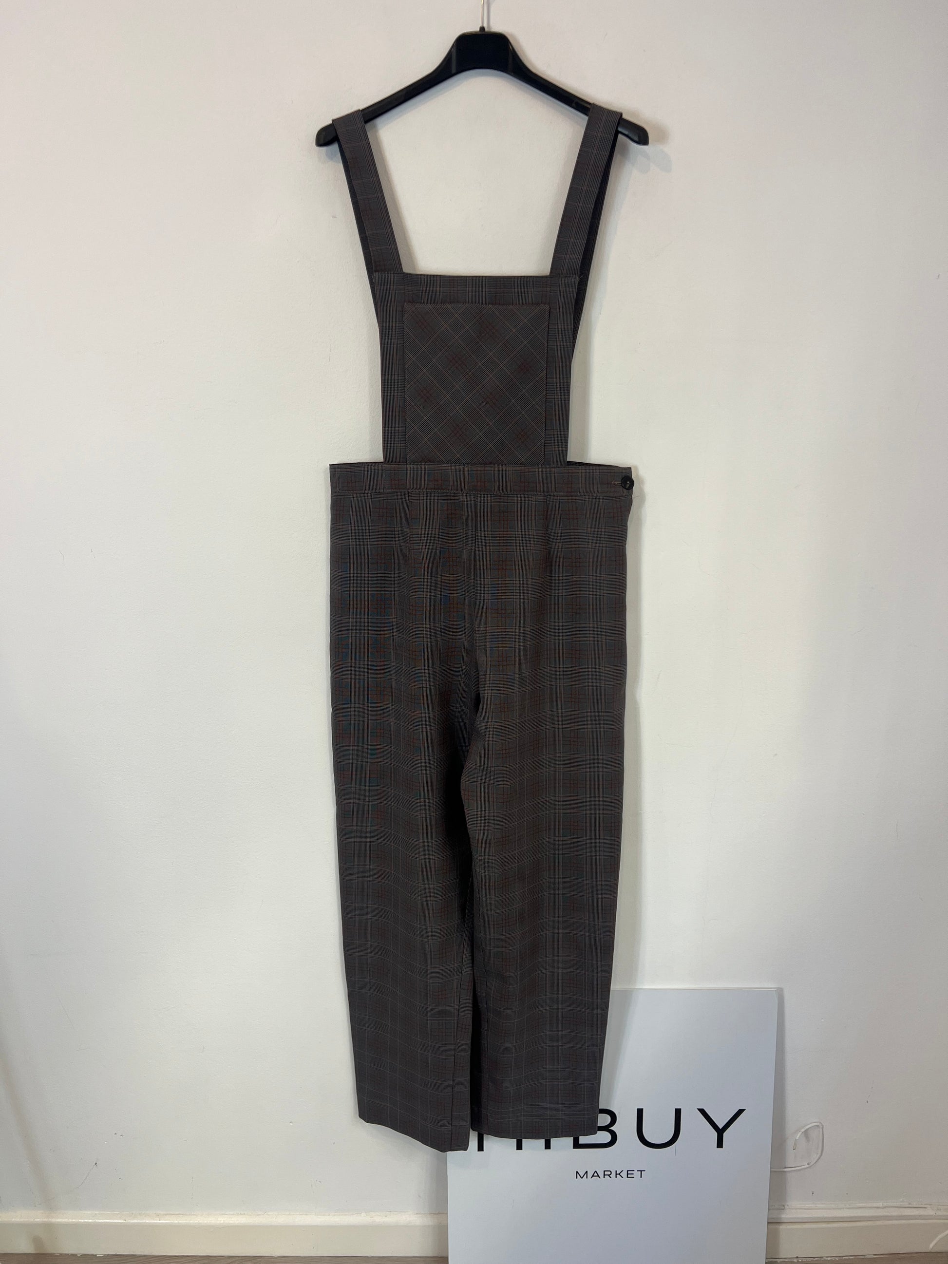 Mono largo gris de cuadros. Fluido estilo palazzo. Cintura 40 cm largo 125 cm (sin tirantes)