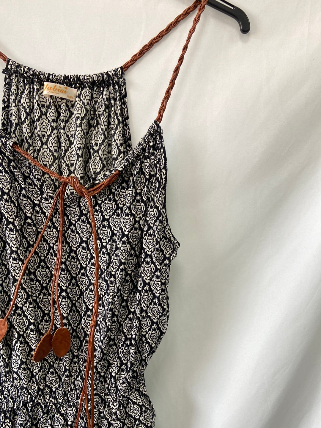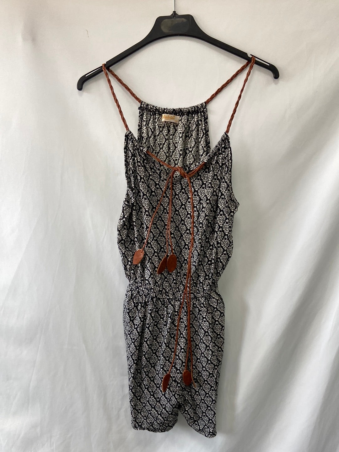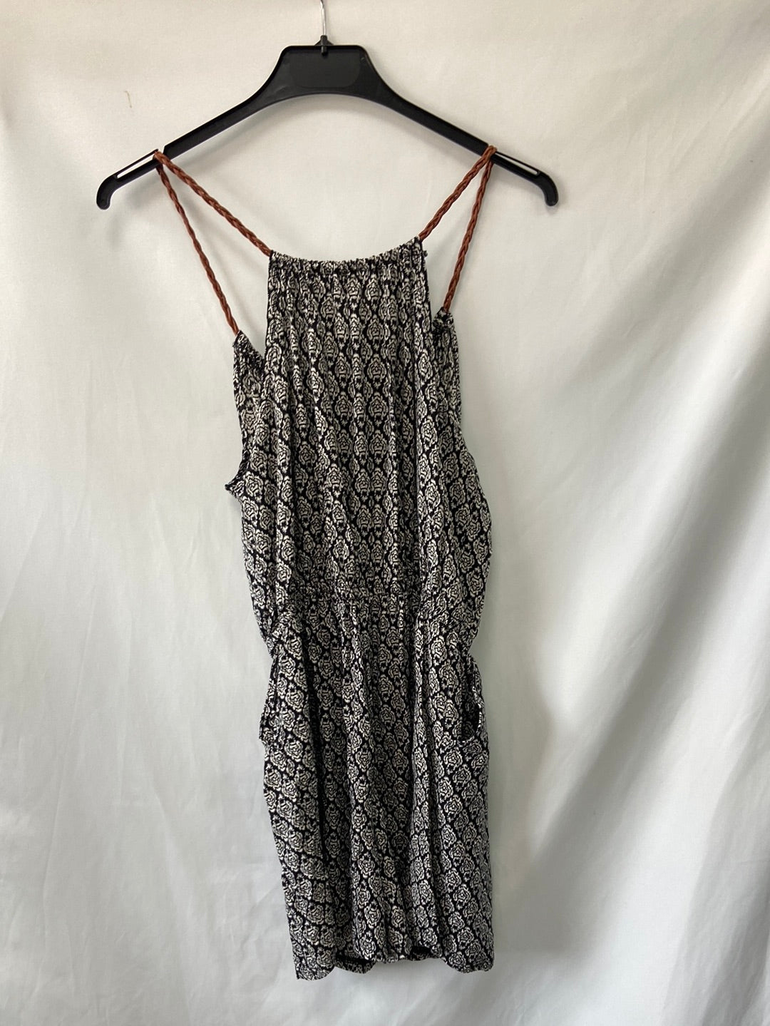mono corto blanco y negro con tirantes trenza. Cintura elástica. Largo 81 cm.