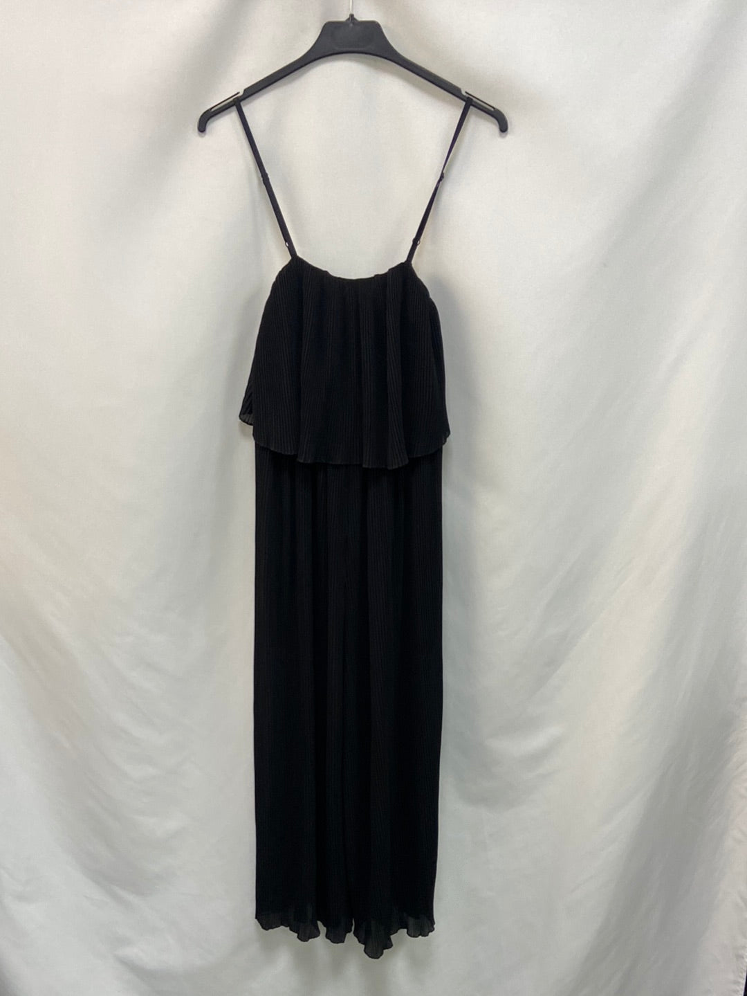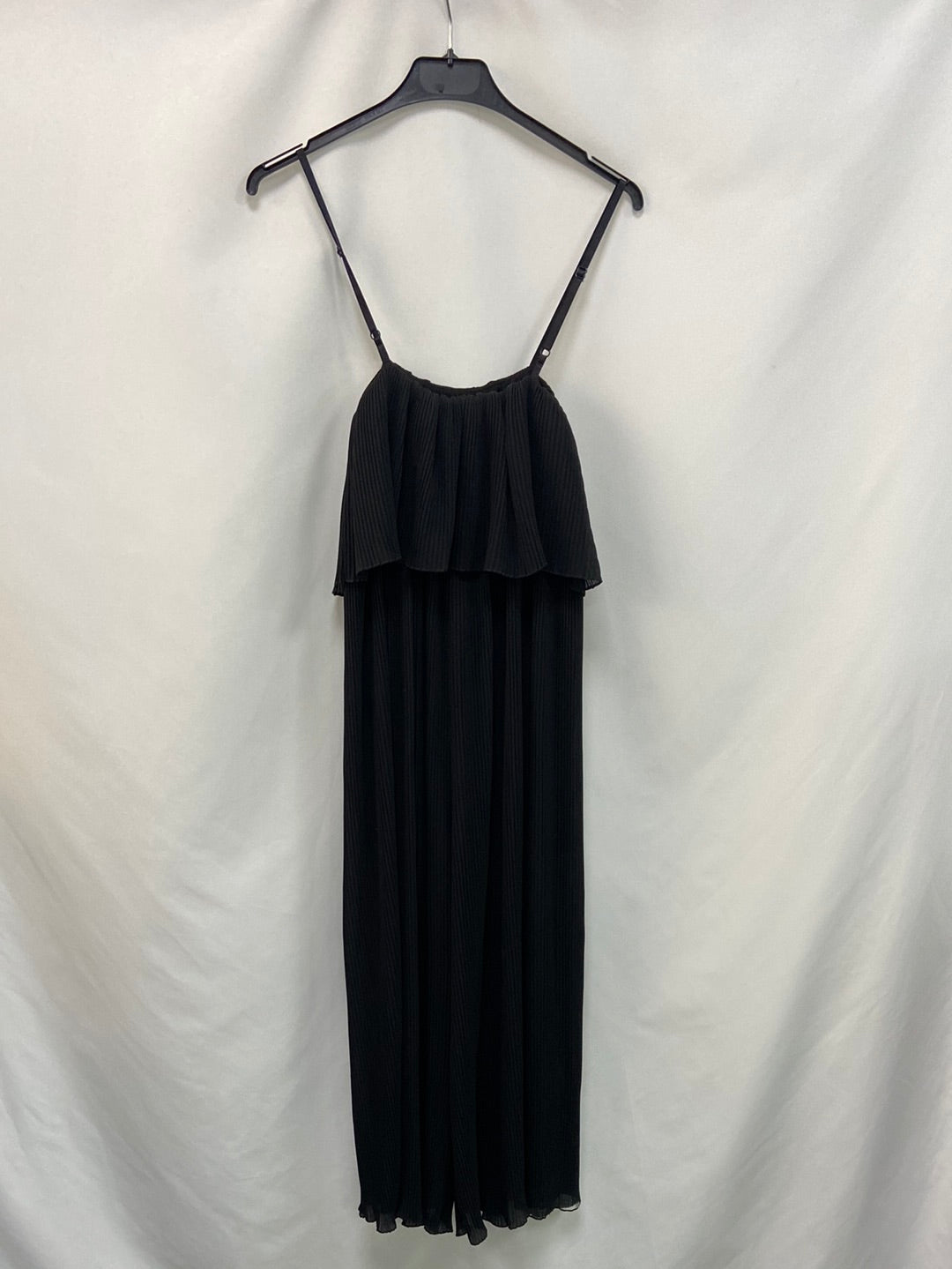Mono negro largo de tejido plisado con forro interior, tir antes regulables