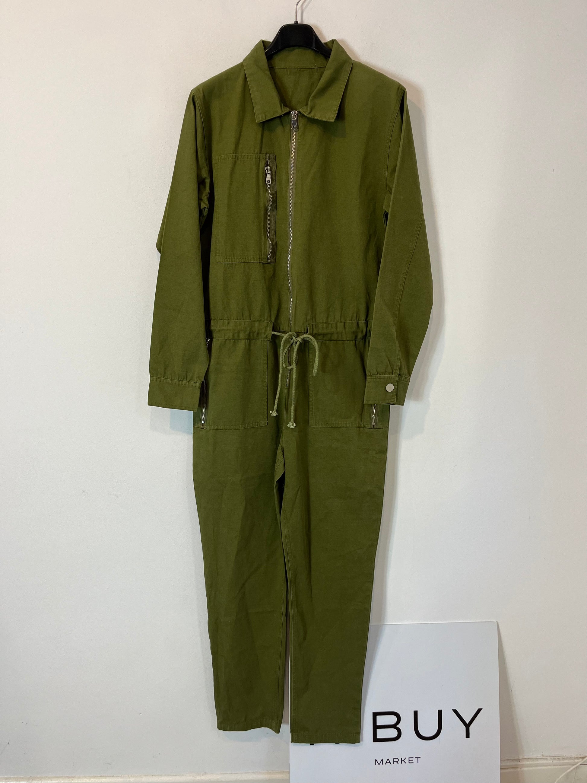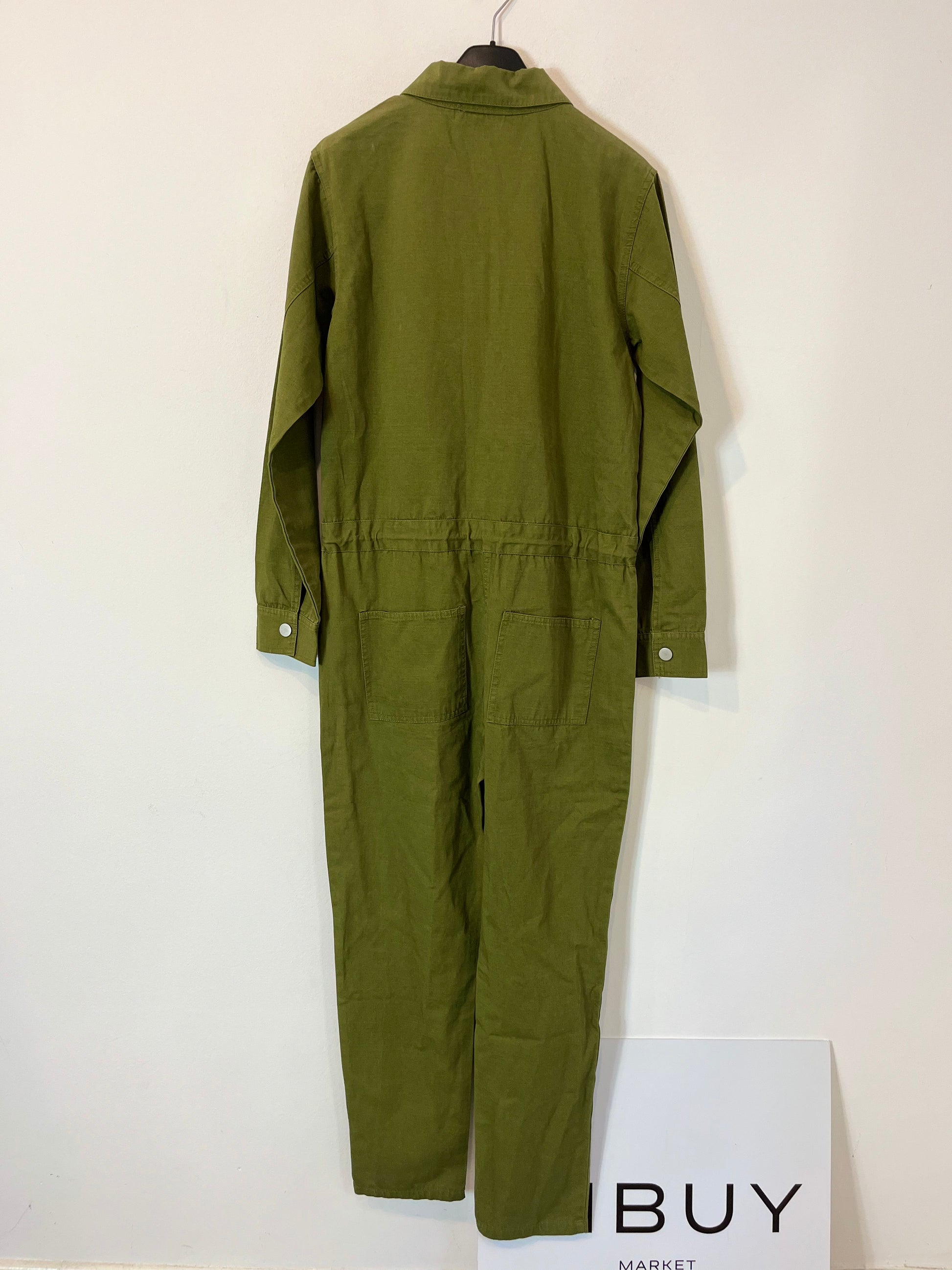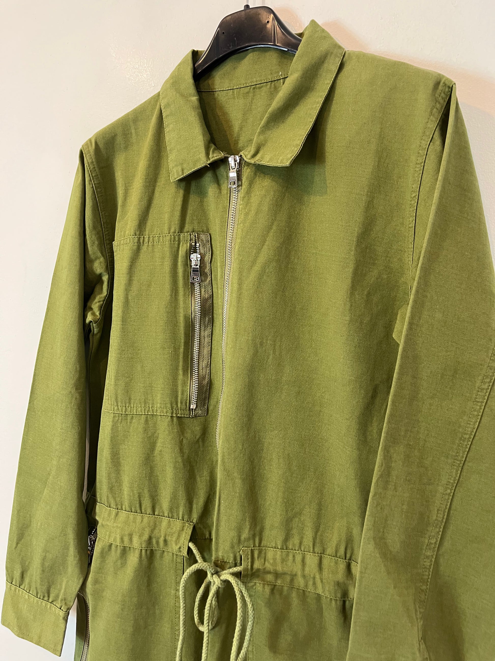 Mono verde largo fluido. Detalle de cremallera. De sisa a sisa 48 cm, cintura 45 cm, largo 146 cm .