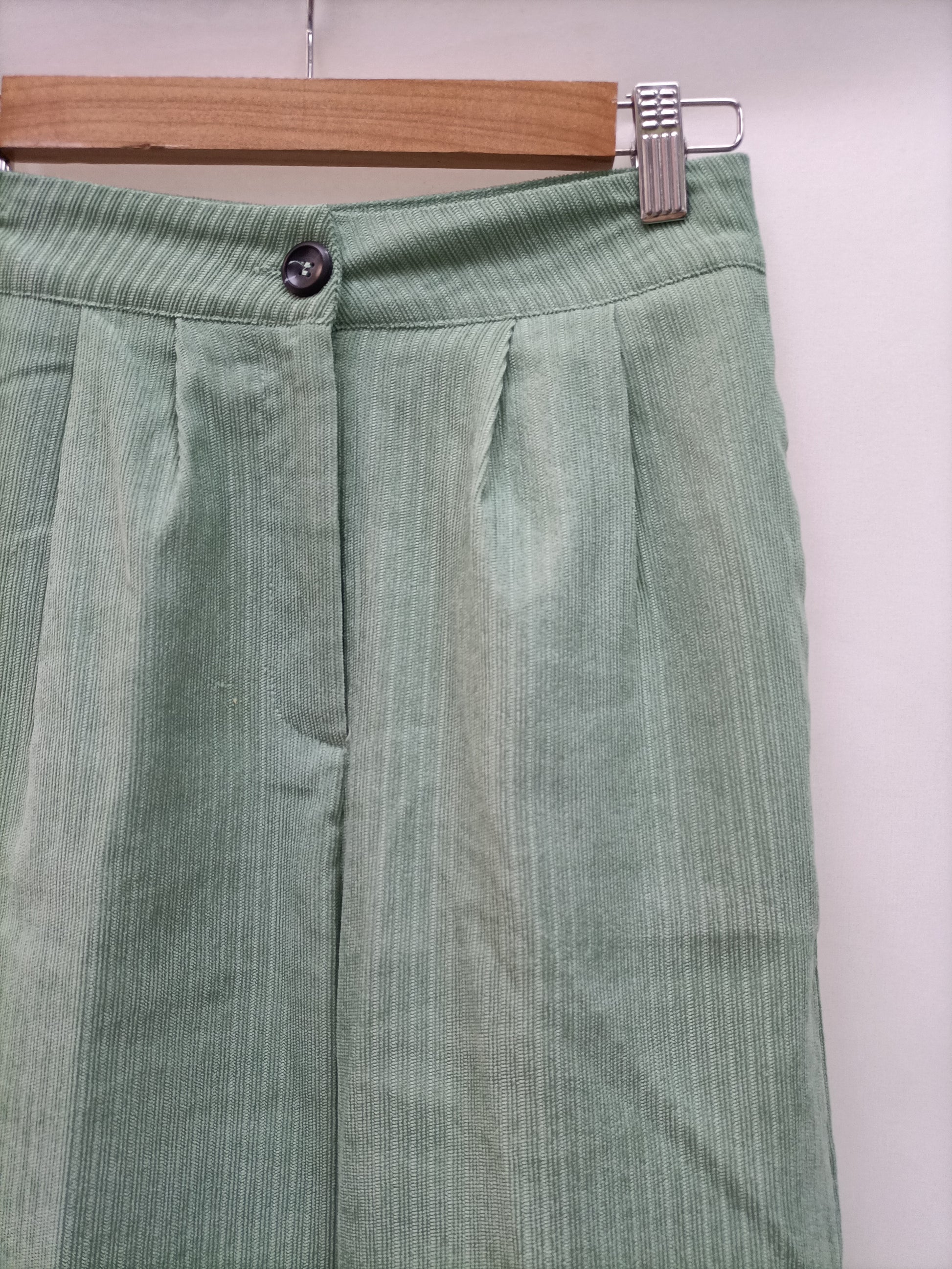 Pantalón verde fluido de tejido de pana fina. cintura 33 cm Largo 1045cm