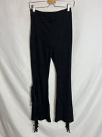 Pantalón negro estilo leggins de antelina con flecos en los laterales.