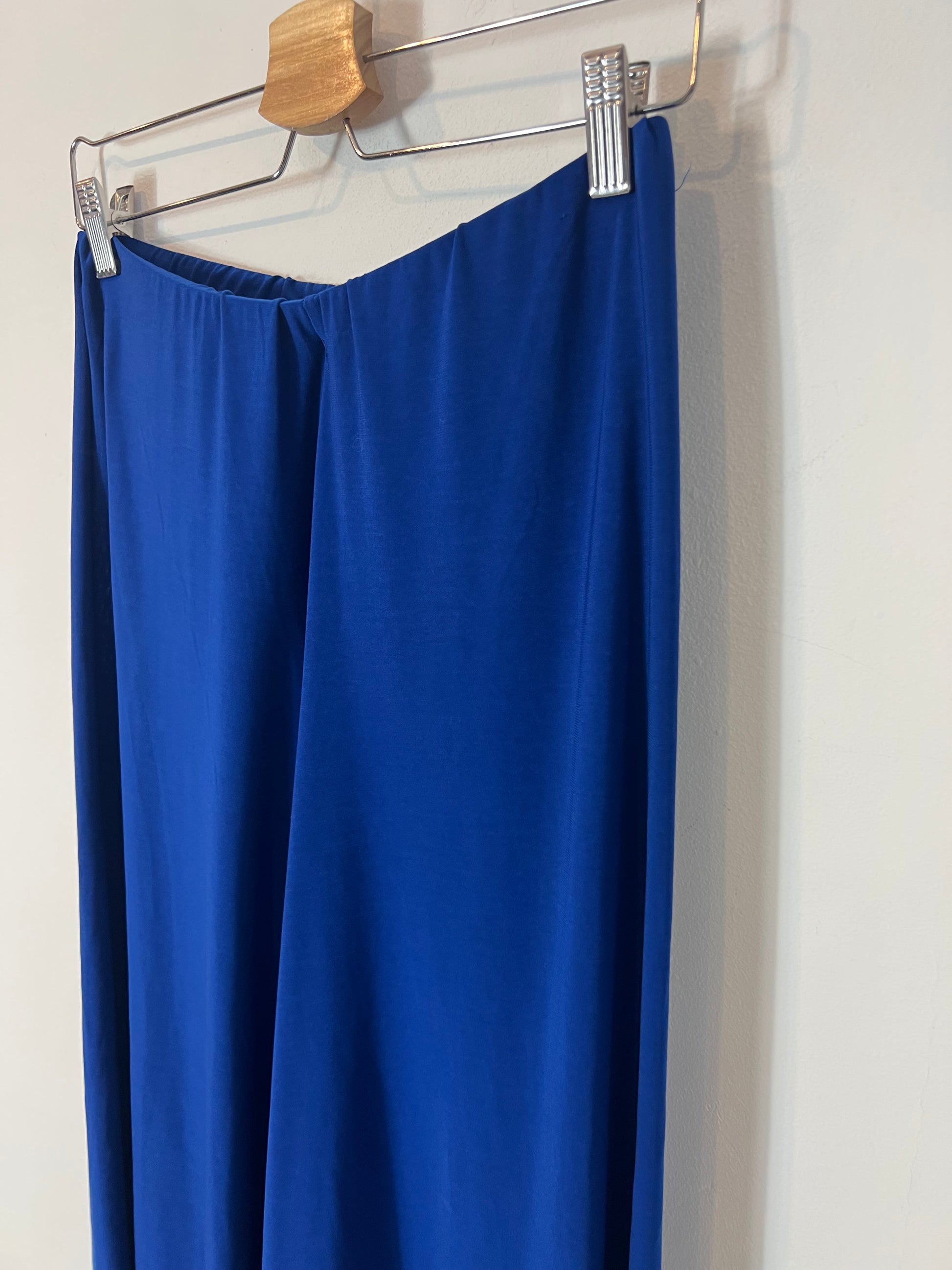 Pantalón azul fluido efecto falda. Cintura 37 cm, Largo 99 cm