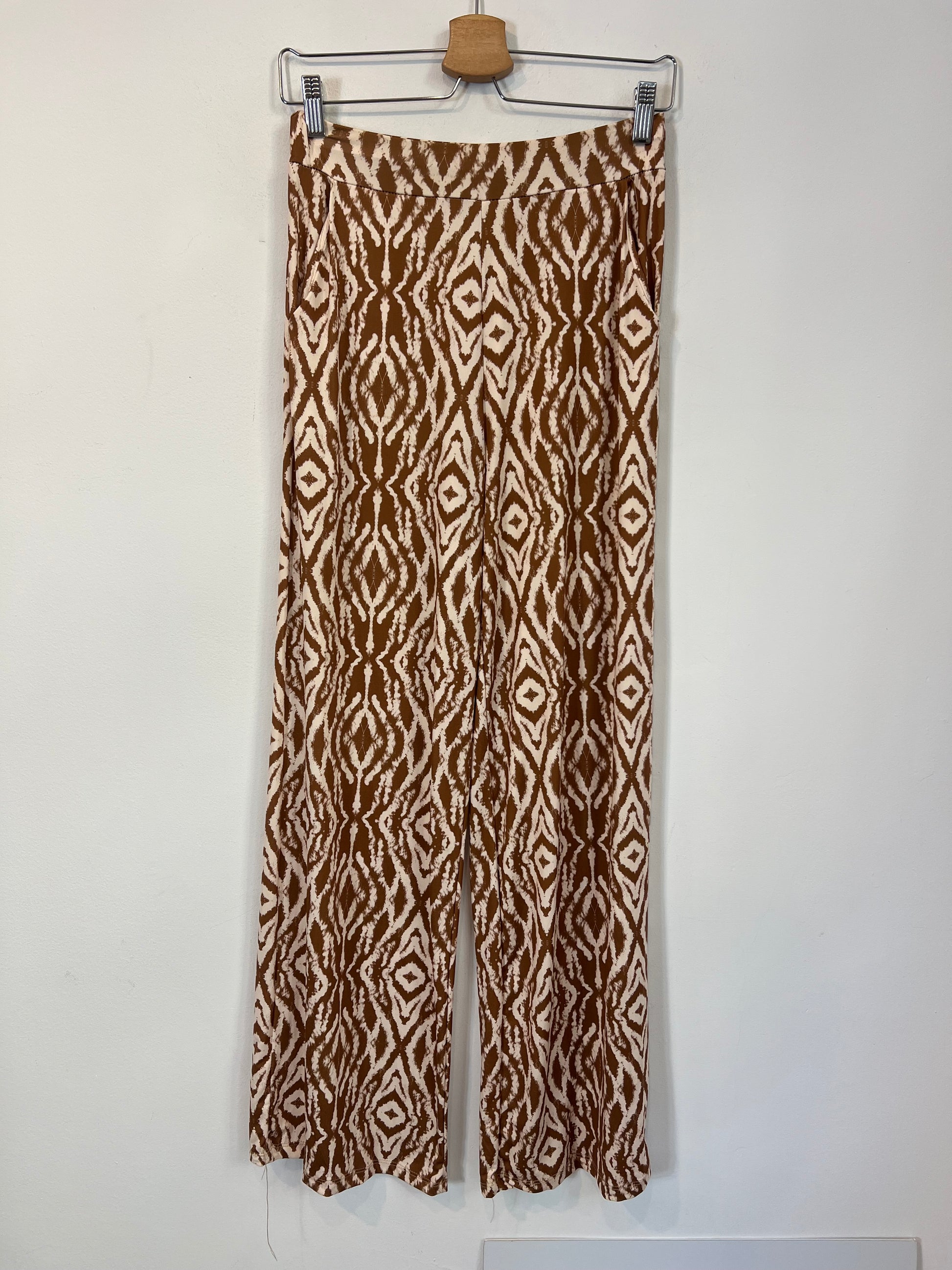 Pantalón fino y fluido de tejido elástico. beige y marrón. fino. Cintura 35 cm largo 109 cm.
