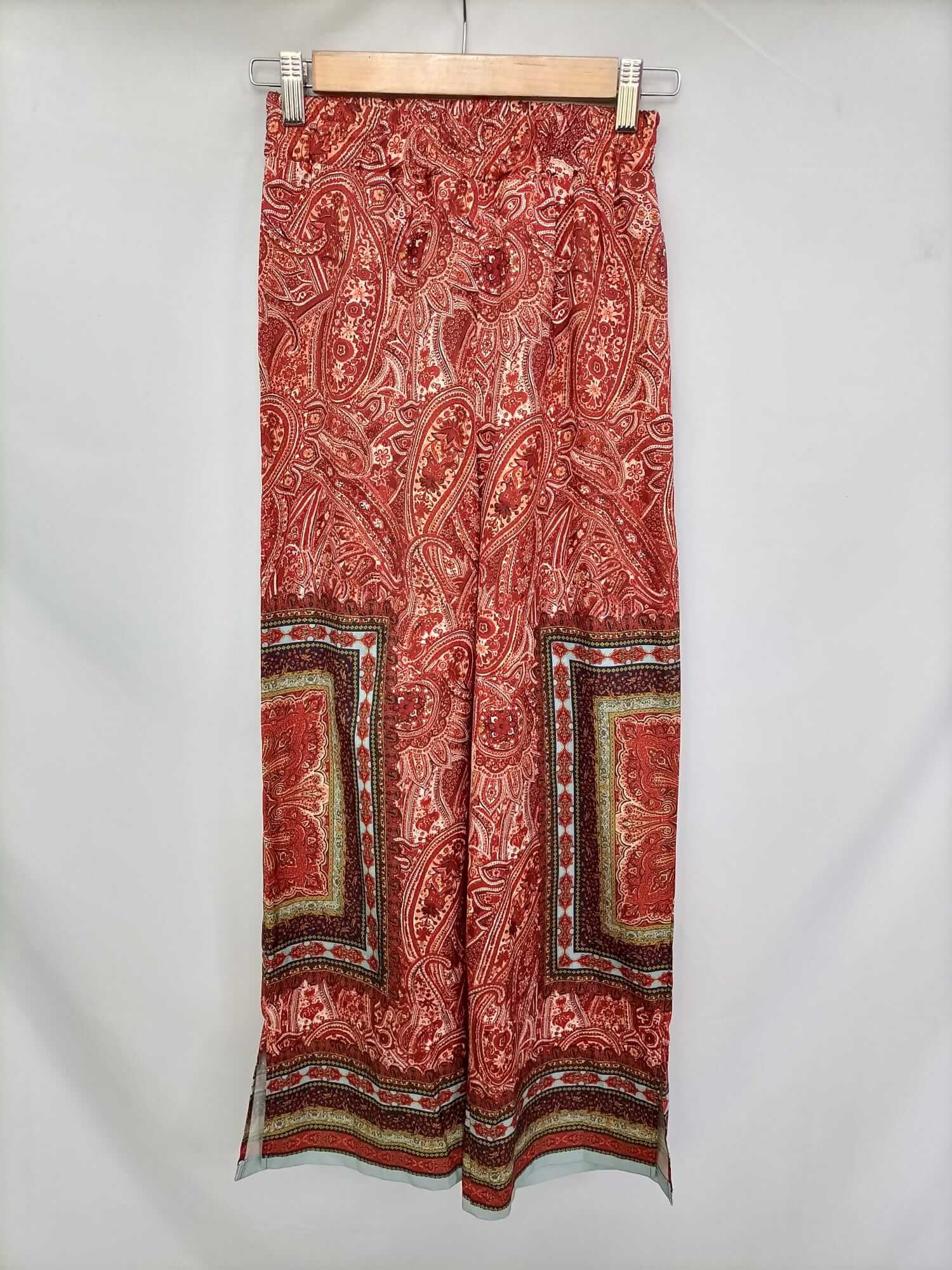 Otras. S. Pantalón fluido estilo culotte con la cintura elástica. Estampado de amebas. Largo 95 cm