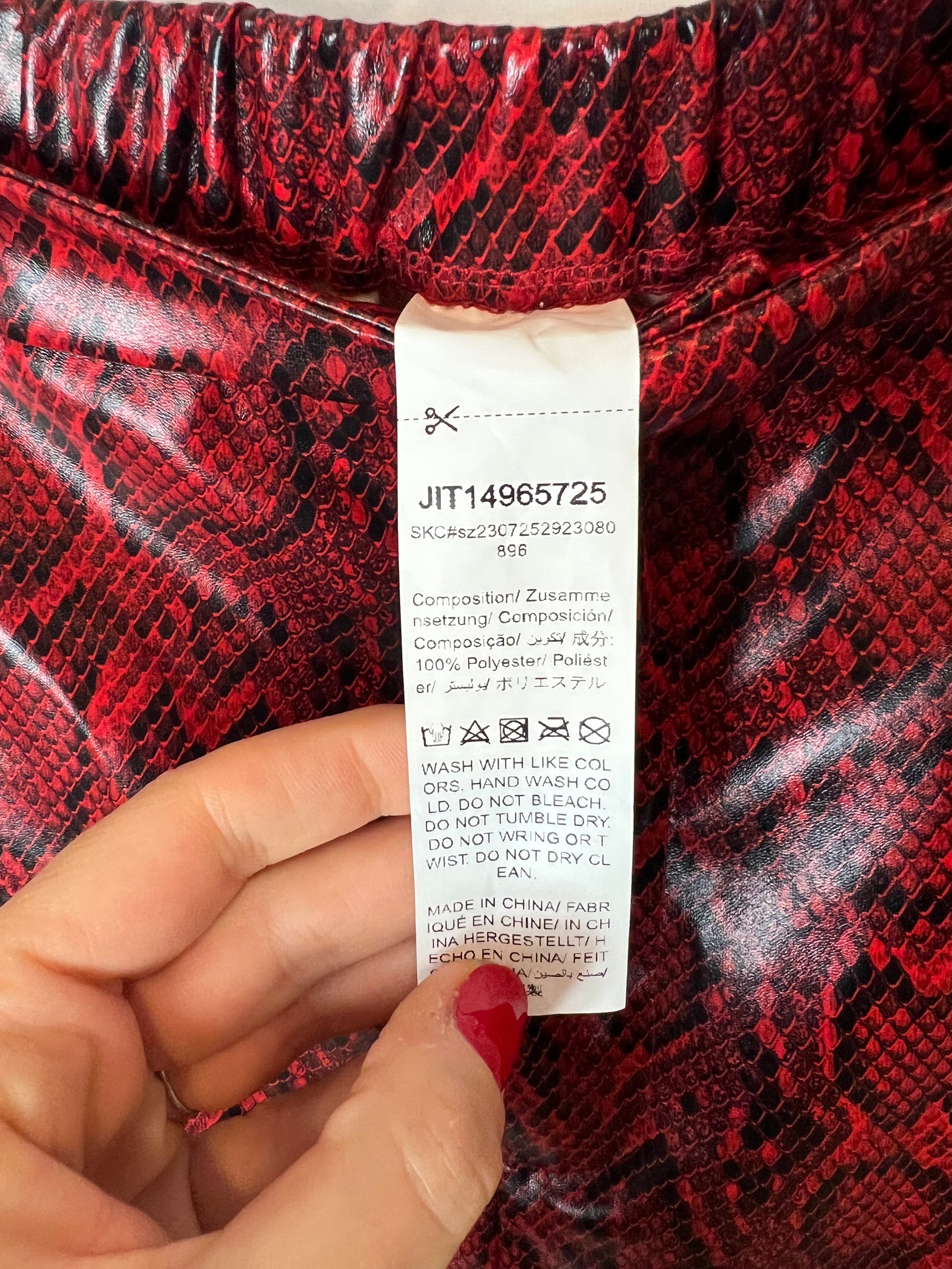 Pantalón recto efecto piel negro y rojo con estampado animal print. Cintura 34 cm largo 93 cm