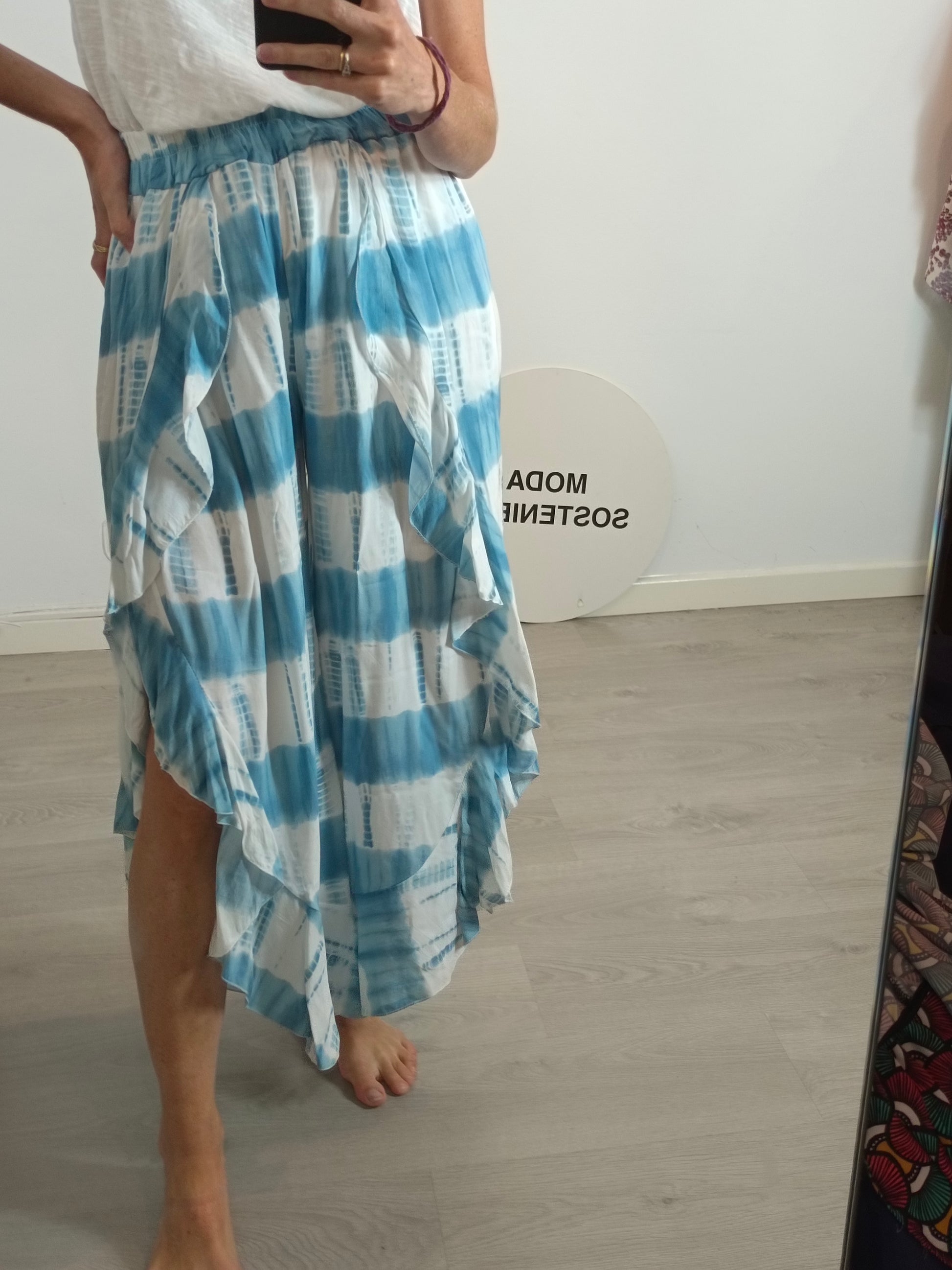 Pantalón fluido estampado tie dye con aberturas. fluido y fino.