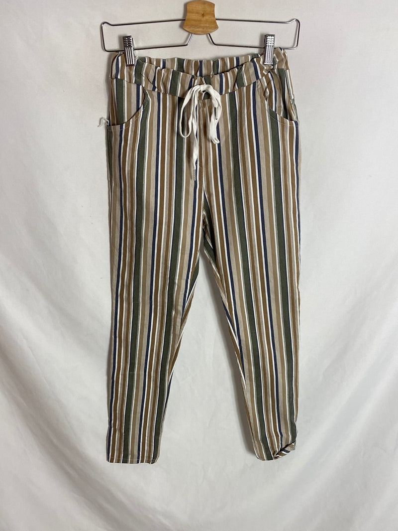 OTRAS. Pantalones rectos fluidos rayas. T.36