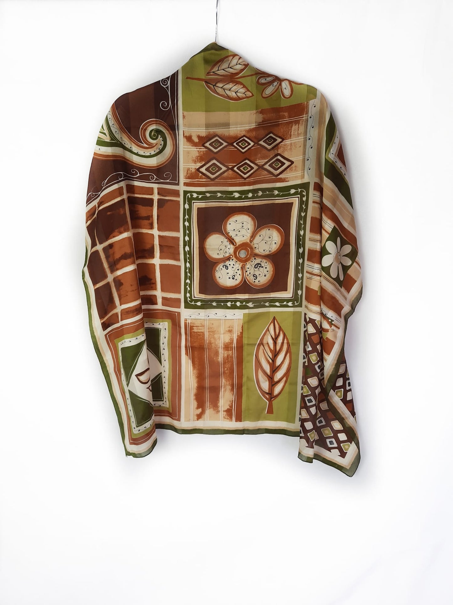 Pañuelo fluido tipo seda con diferentes estampados. 88 X 88 cm