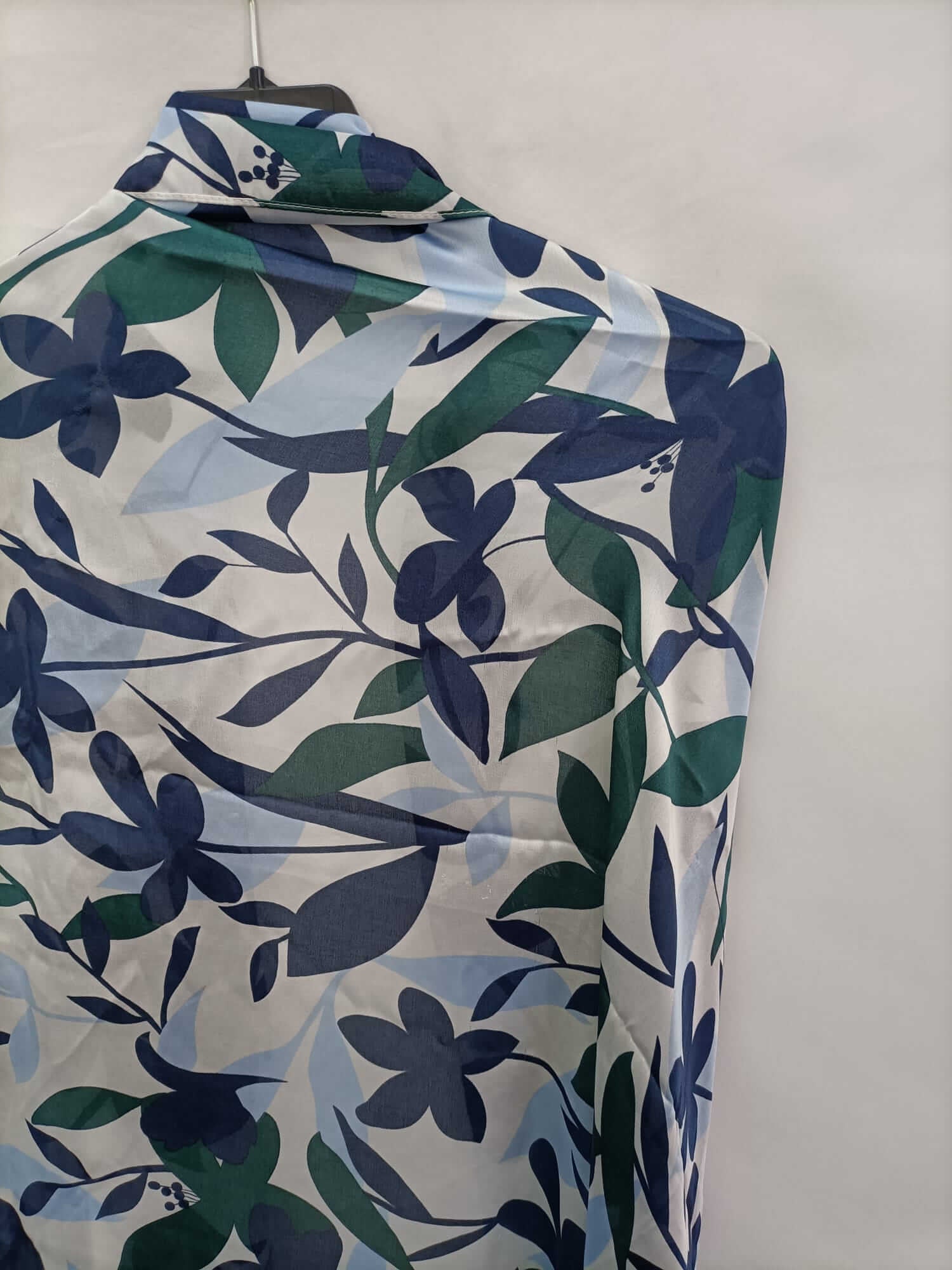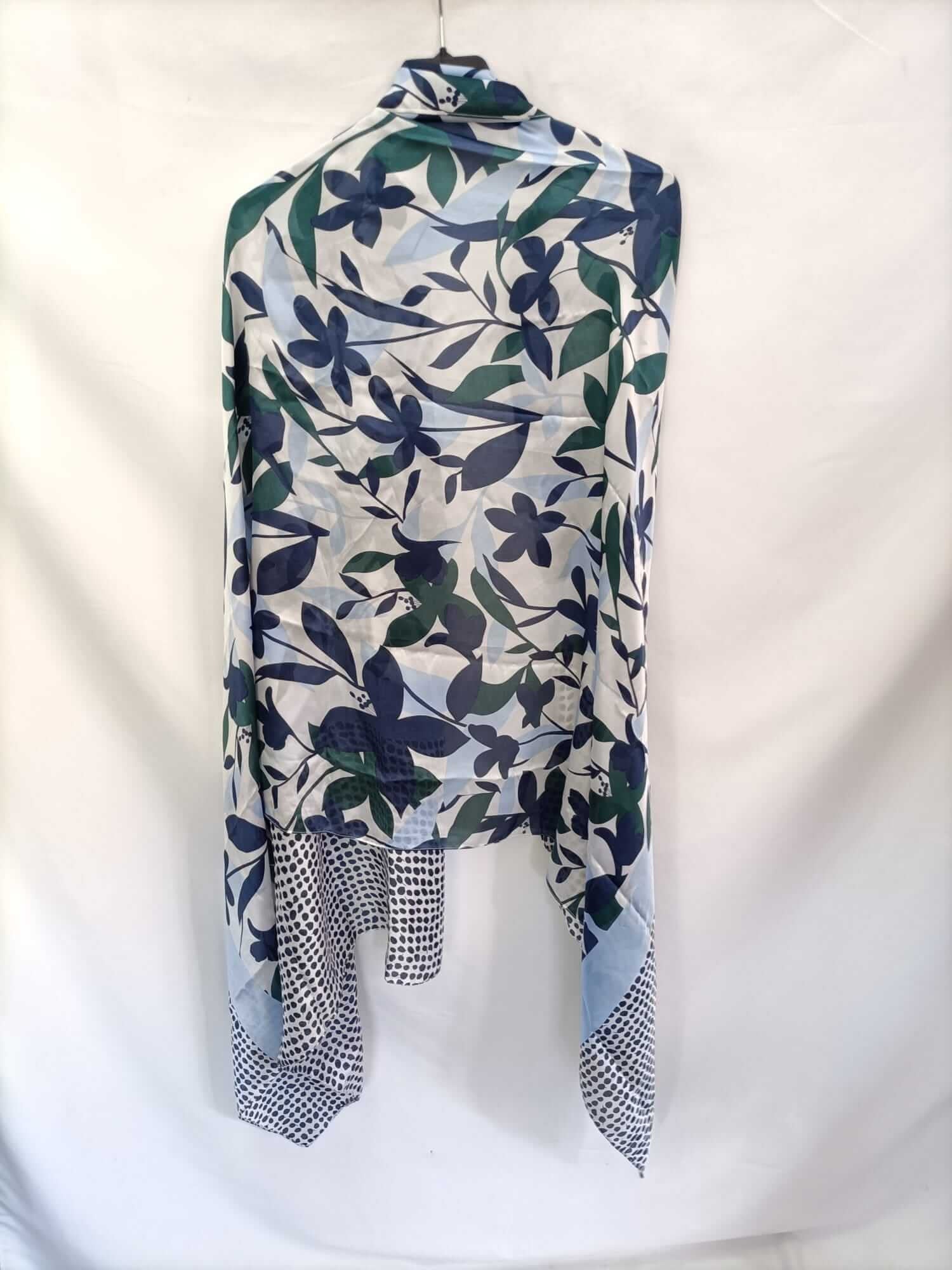 Otras. Pañuelo de flores azules y verde con lunares. Fluido. Viscosa y seda.