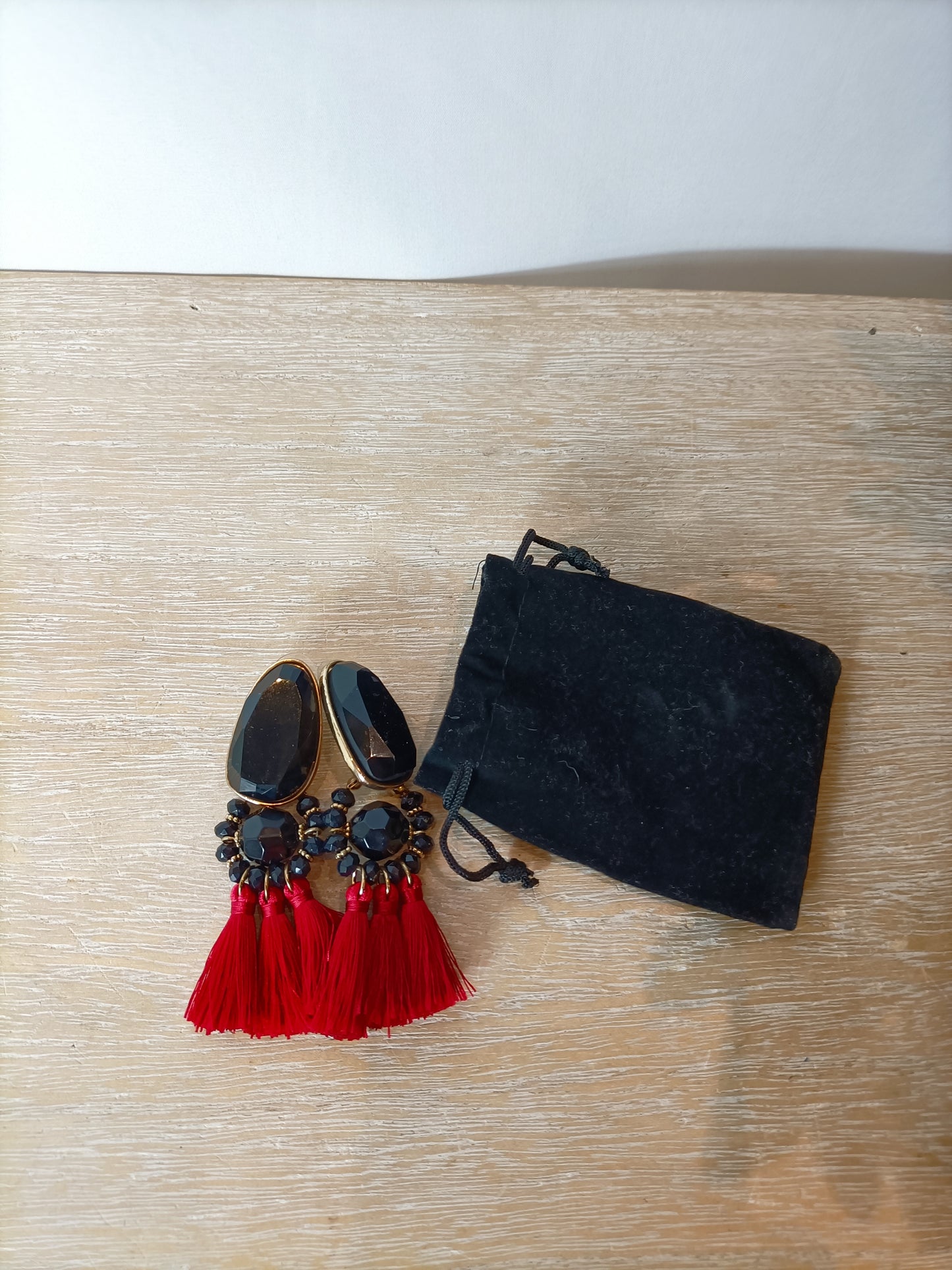 OTRAS.Pendientes negros flecos