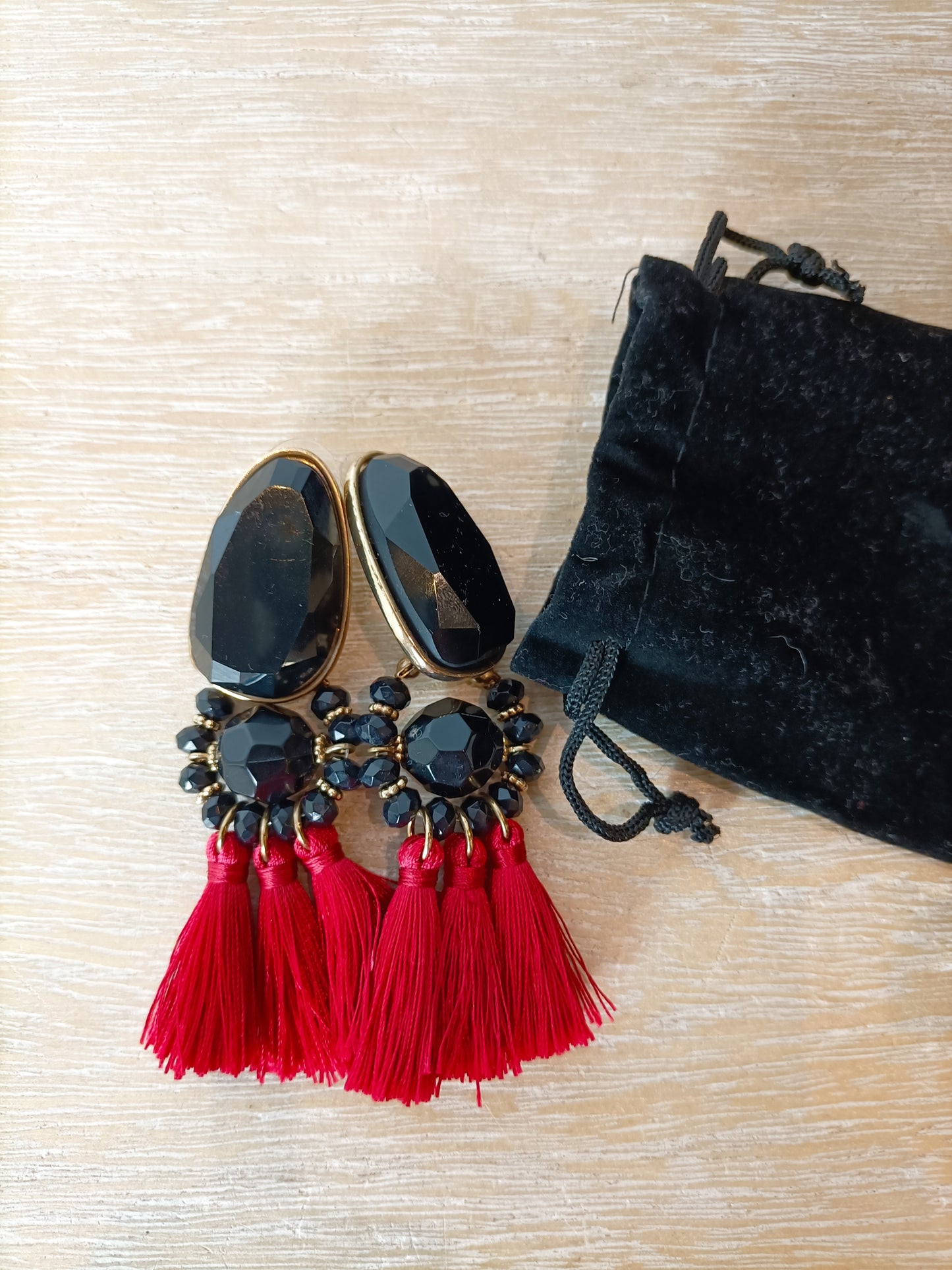 Pendientes de piedras negros con flecos rotos