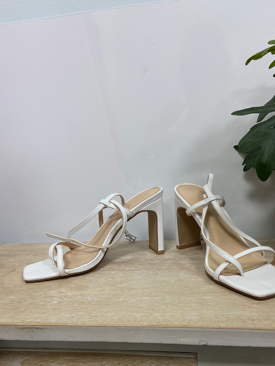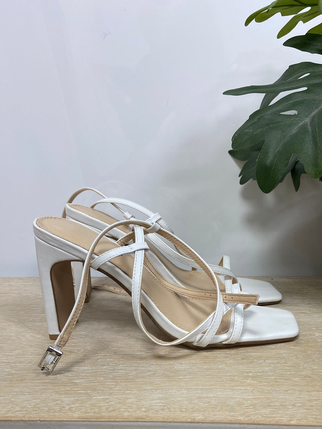 Sandalia blanca de tacón y tiras. Tacón 11 cm