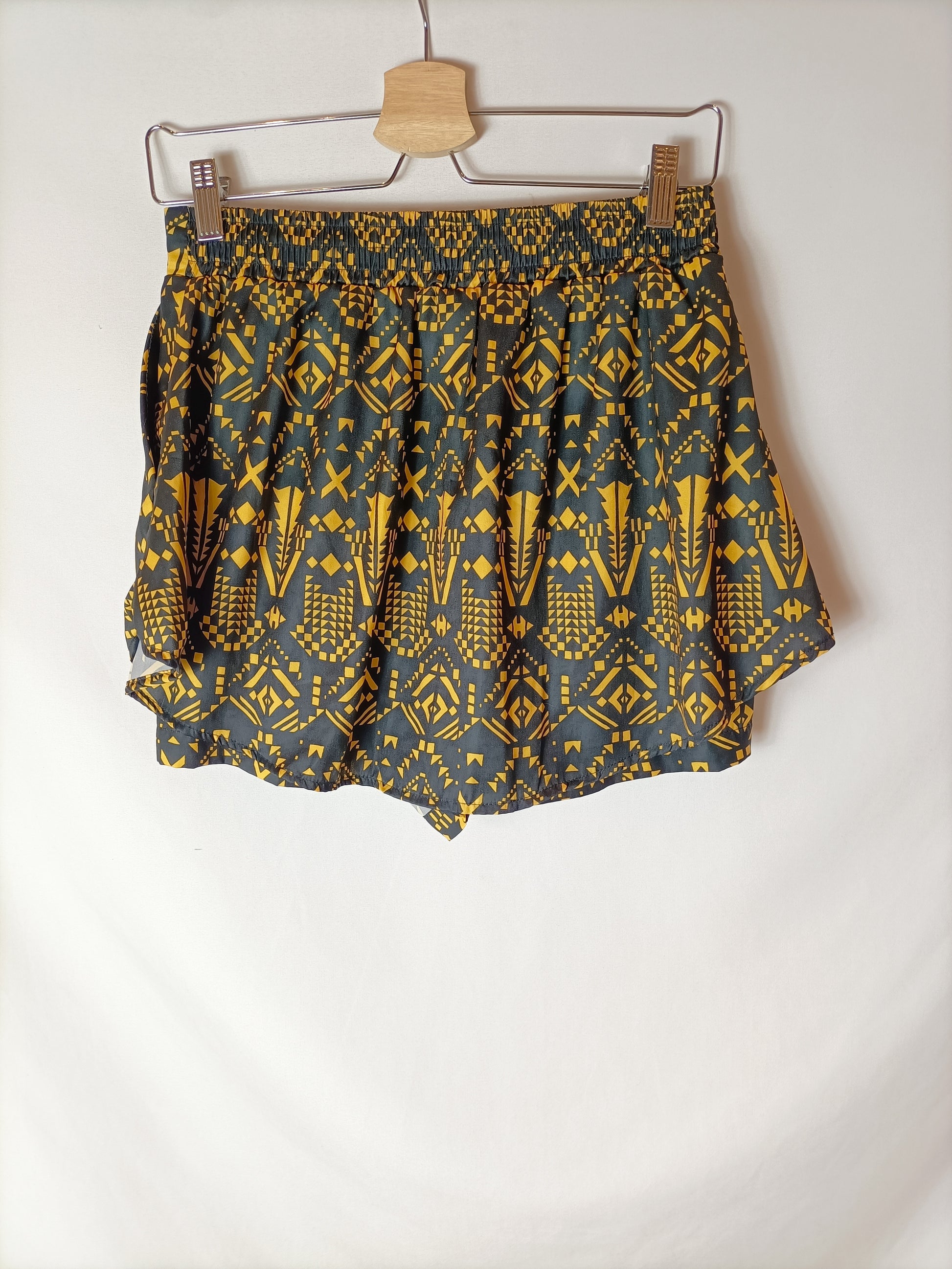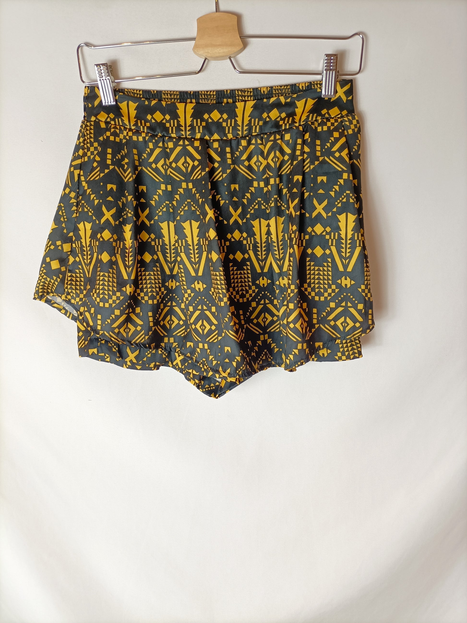 Pantalón corto negro con estampado amarillo. Cintura elástica 36 cm