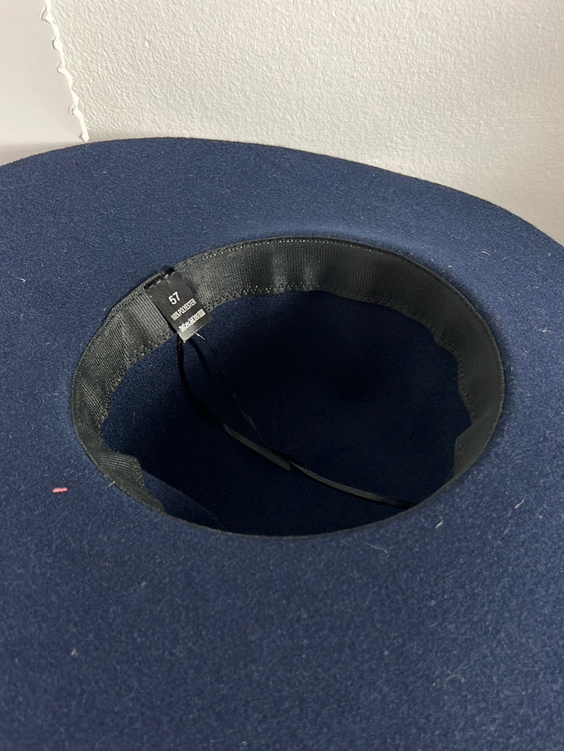 NUEVO SIN USO. Sombrero azul detalle plumas