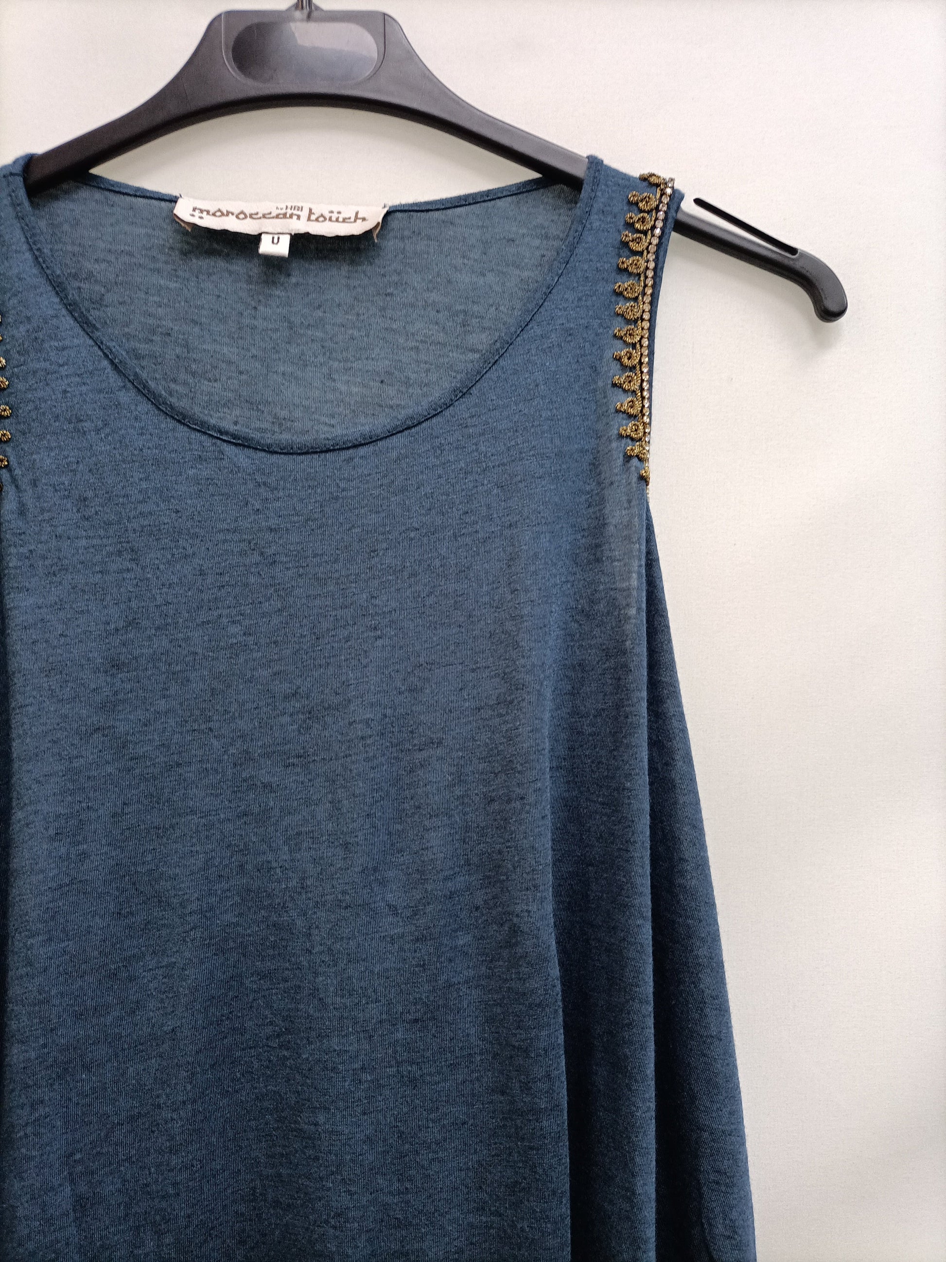 Top azul con detalle de pedrería. largo 66 cm