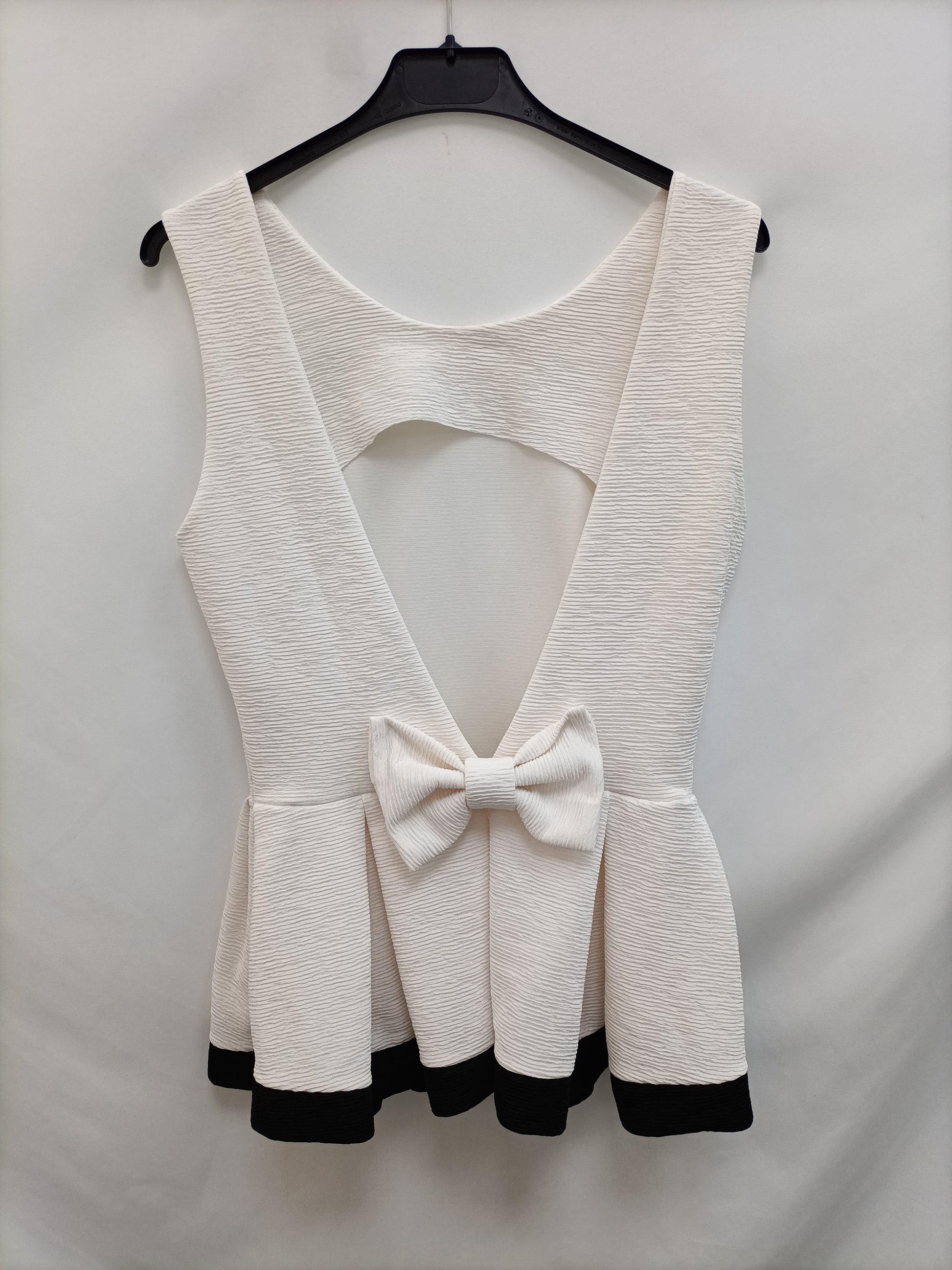 Top elástico textura volante y detalles en negro. largo 61 cm