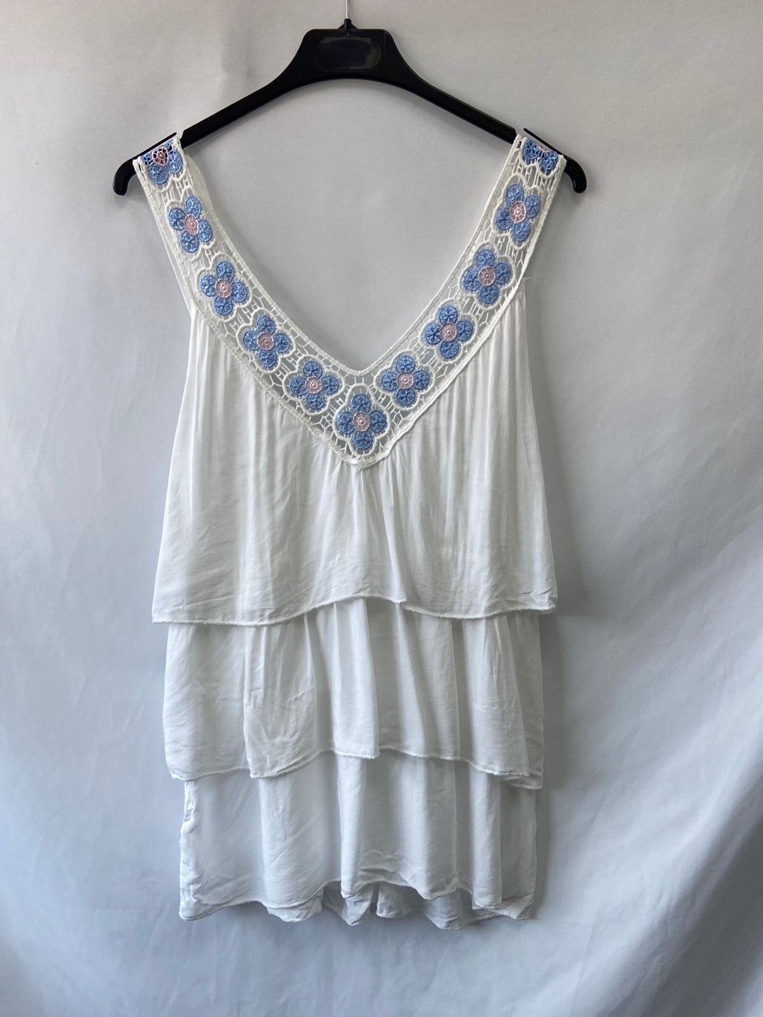 OTRAS.Top blanco volantes croché T.L