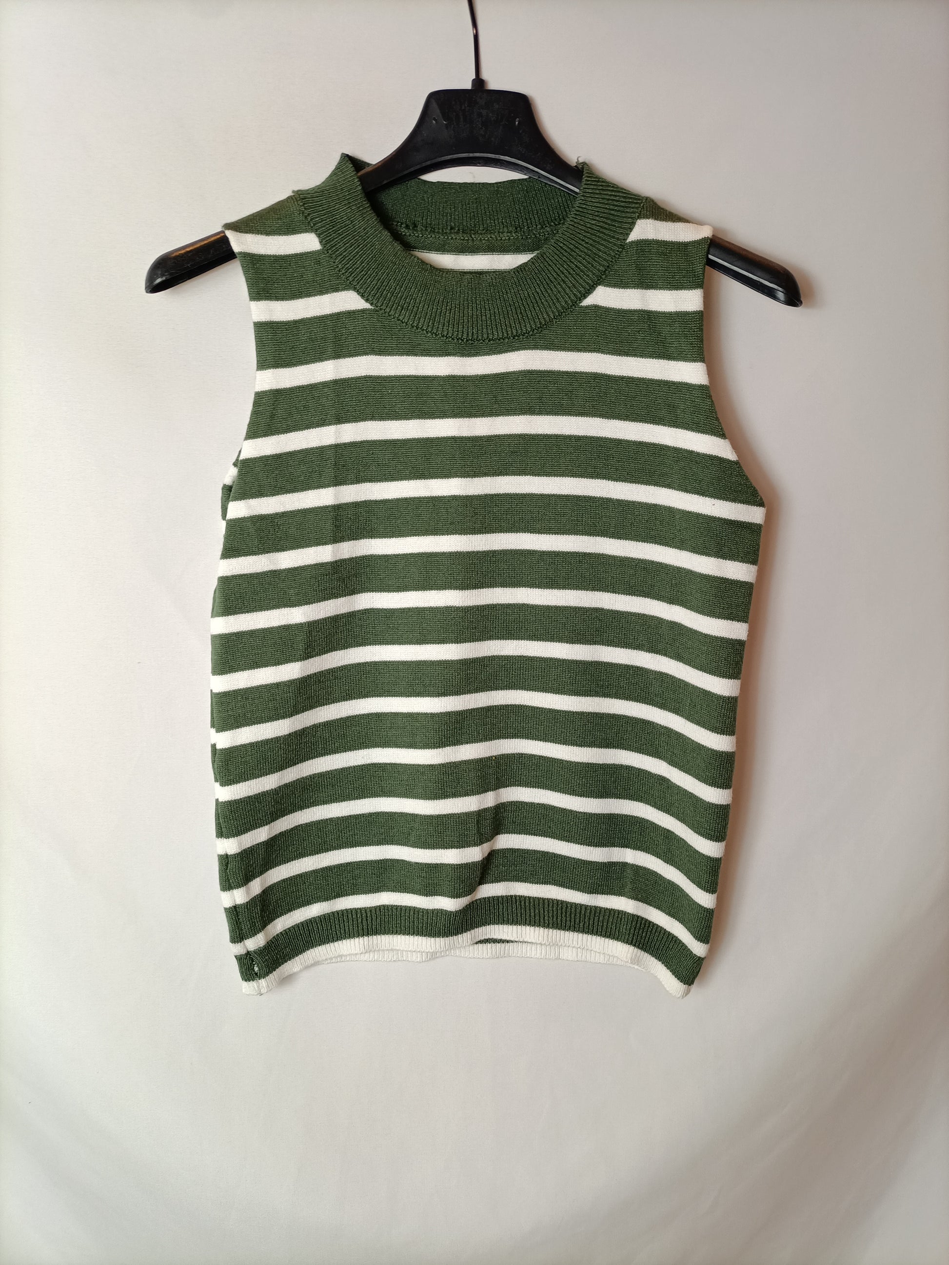 top/chaleco entallado de rayas verde y beige de punto. elástico. largo 49 cm