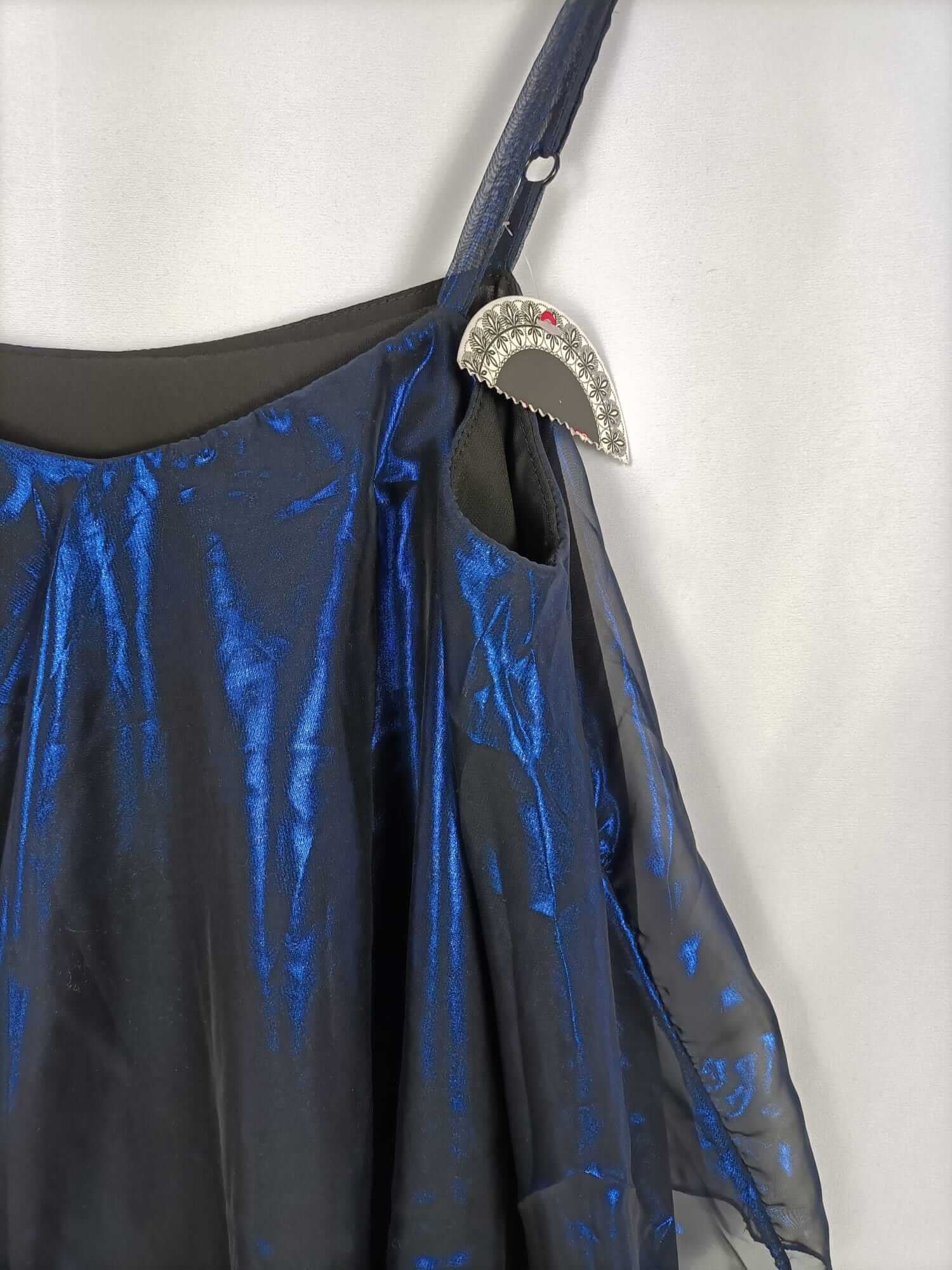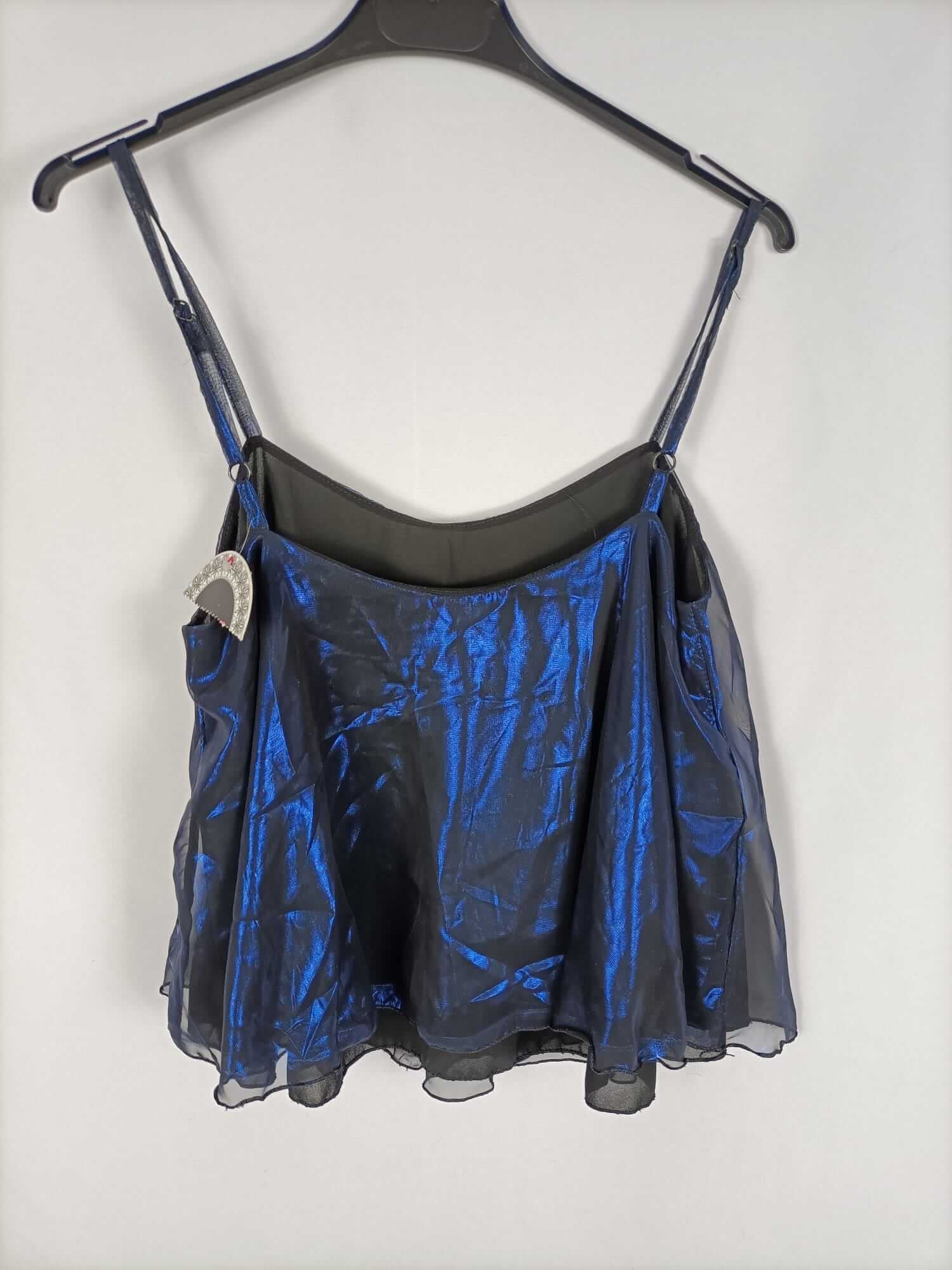 Otras. tu (s/m). NUEVO CON ETIQUETA. Top bicolor azul y negro con doble capa. Tirantes ajustables. No elastico. De sisa a sisa 44 cm largo 52 cm.