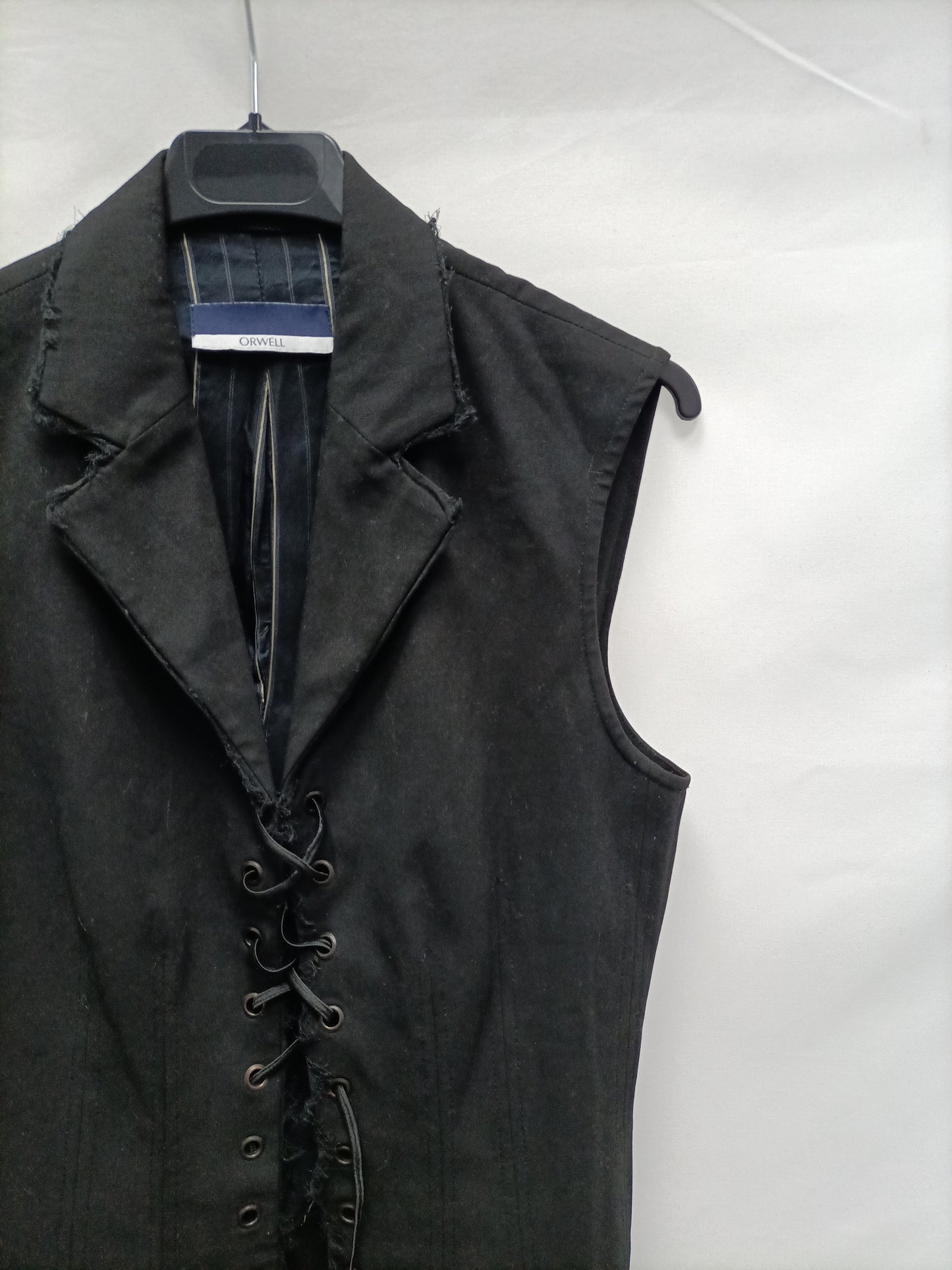 Top negro estilo chaleco con cuerdas. Estructurado. Semi elástico