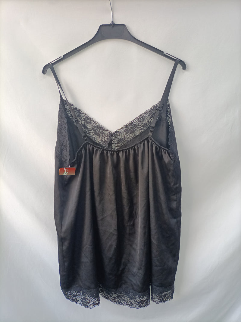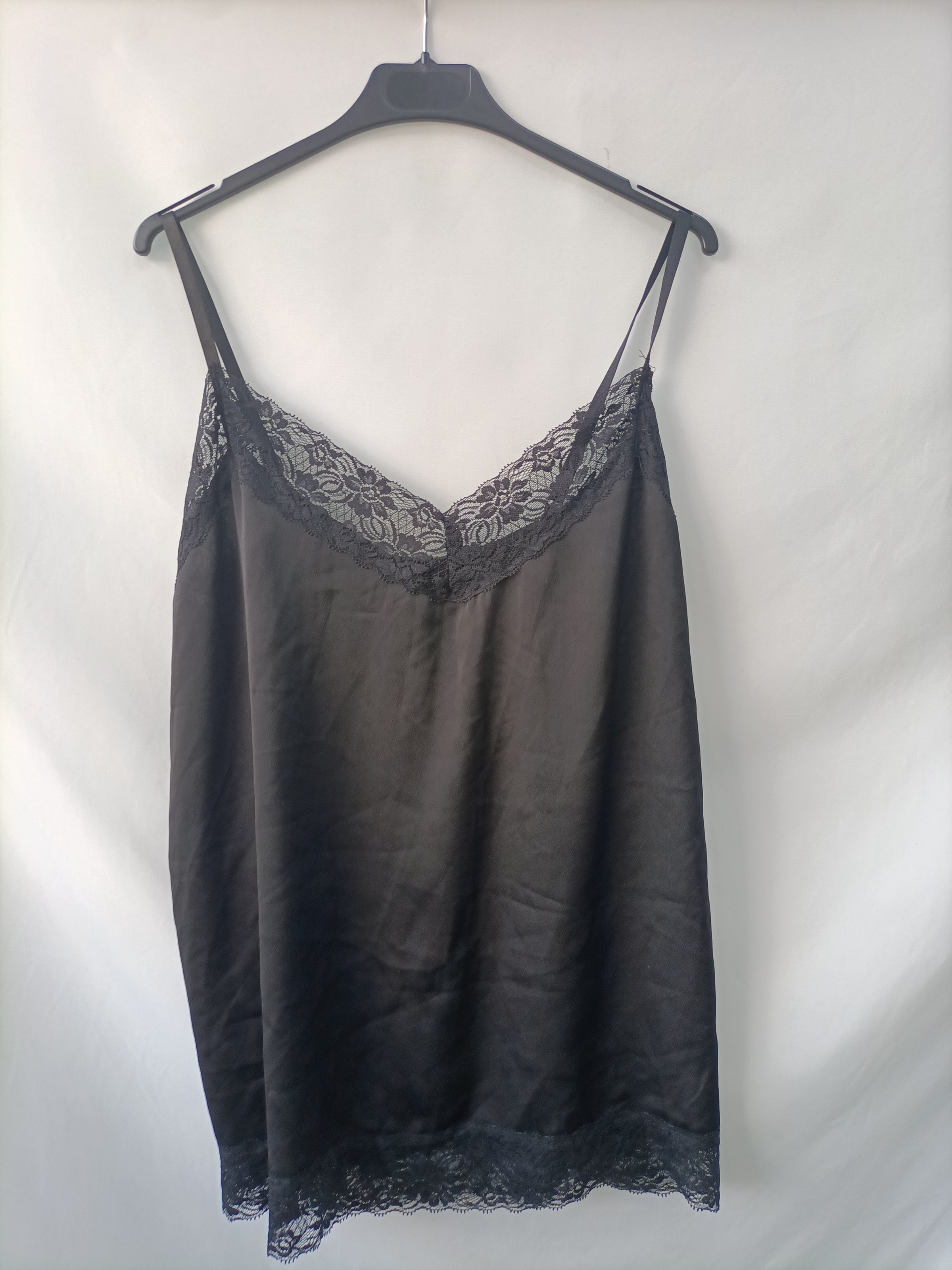 NUEVO CON ETIQUETA. Top negro lencero con con tirantes ajustables y elásticos. Tiene la espalda elástica. Es fluido. Largo 80 cm