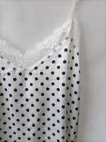 Top lencero blanco con lunares negros, tirantes ajustables y espalda elástica. NUEVA CON ETIQUETA
