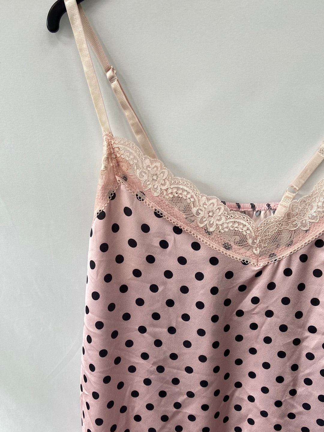 Top lencero rosa con lunares negros, tirantes ajustables y espalda elástica. NUEVA CON ETIQUETA