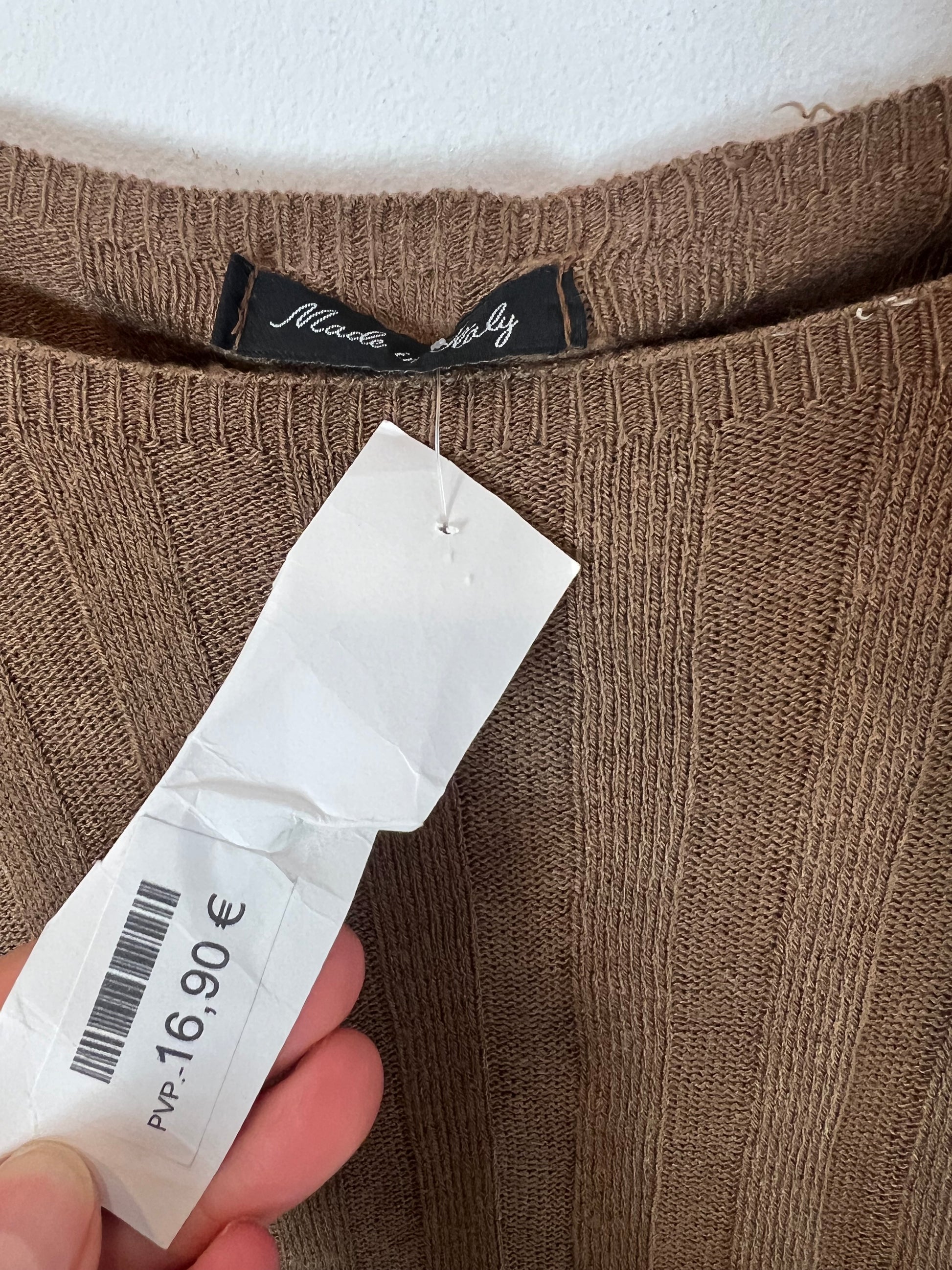 NUEVO CON ETIQUETA. Top marrón canalé. Largo 65 cm