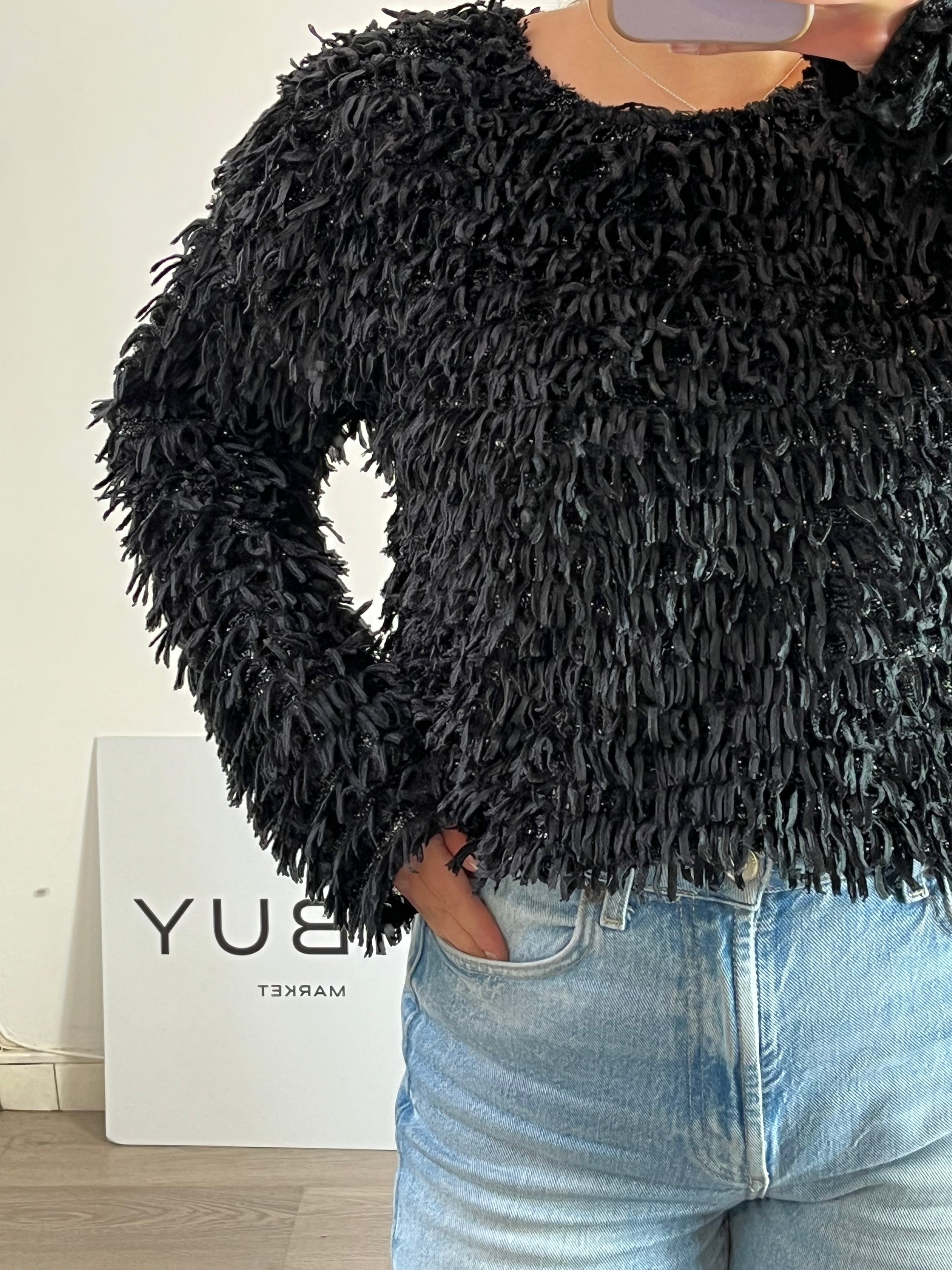 NUEVO CON ETIQUETA. Top negro flecos. Elástico Largo 61 cm